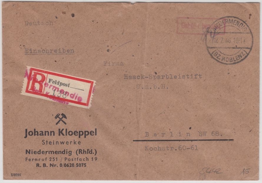 n. Berlin - Aushilfs-R-Zettel (Feldpost-Aufbrauch) - ohne Inhalt