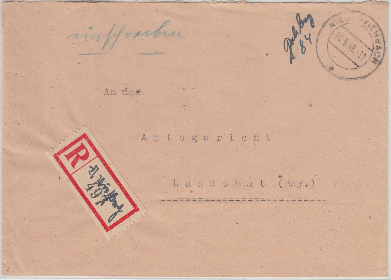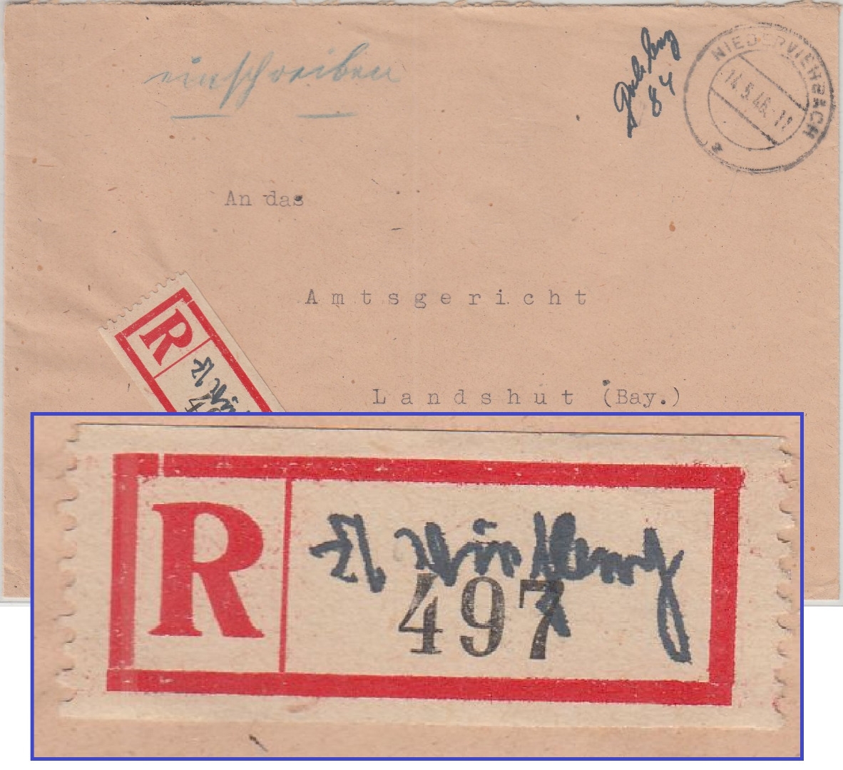 Aushilfs-R-Zettel m. hds. Ortsangabe - derart aussagekräftige Aushilfsmaßnahmen sind von so kleinen Orten schwer zu finden - ohne Inhalt