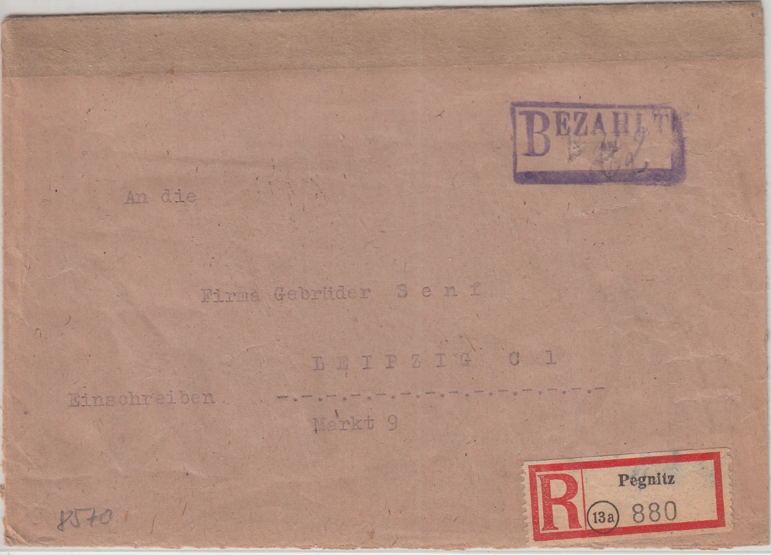 ohne Aufgabe- aber mit Ankunftsstempel - ohne Inhalt