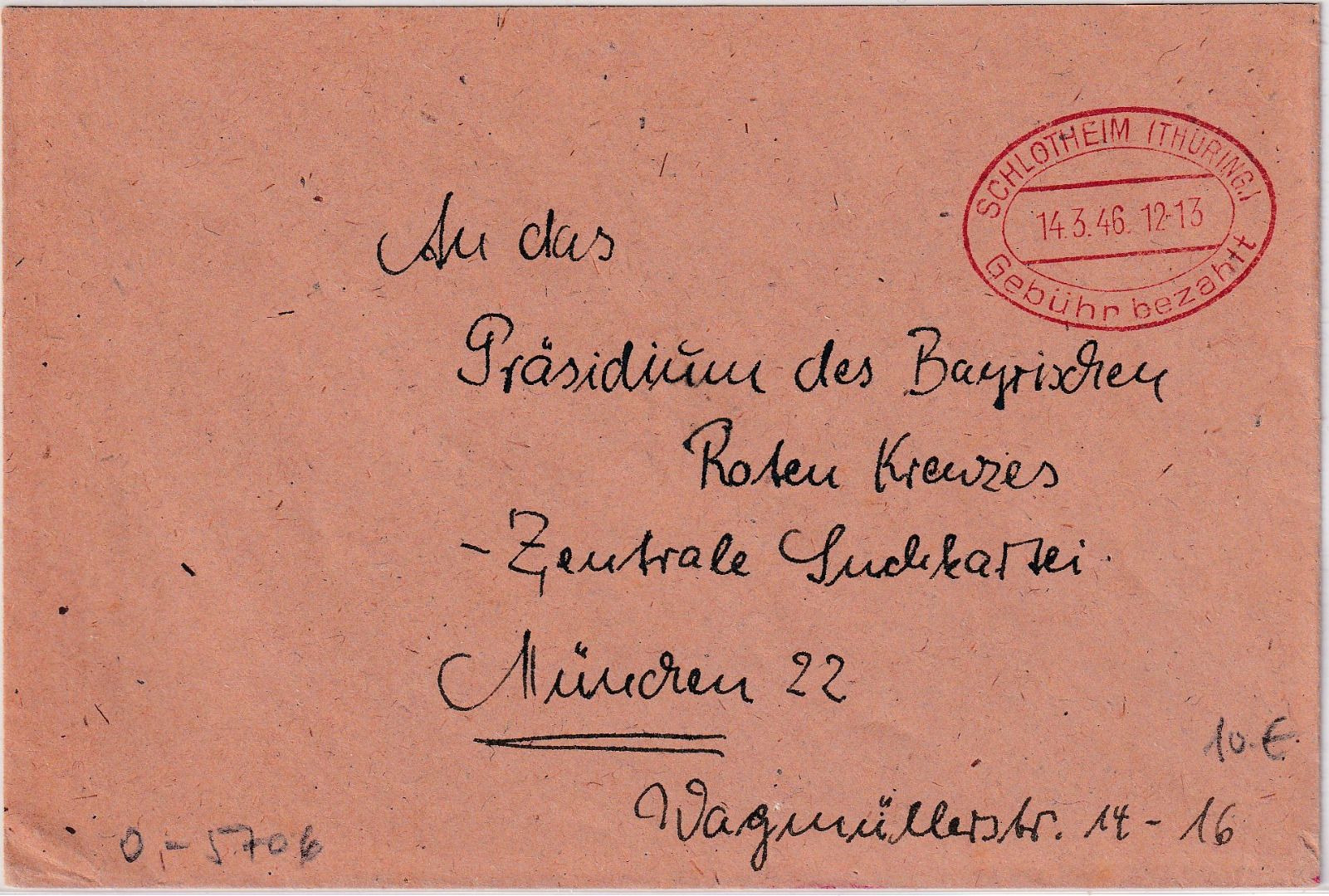 adr. an das Bayer. Rote kreuz "Zenstrale Suchkartei" - ohne Inhalt - Kuvert oben minimal verkürzt