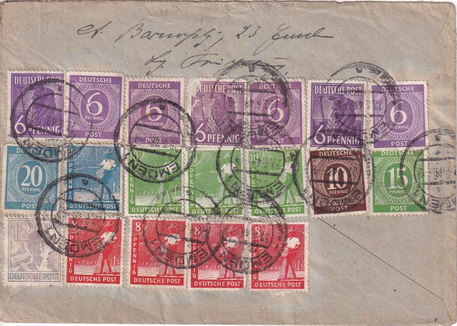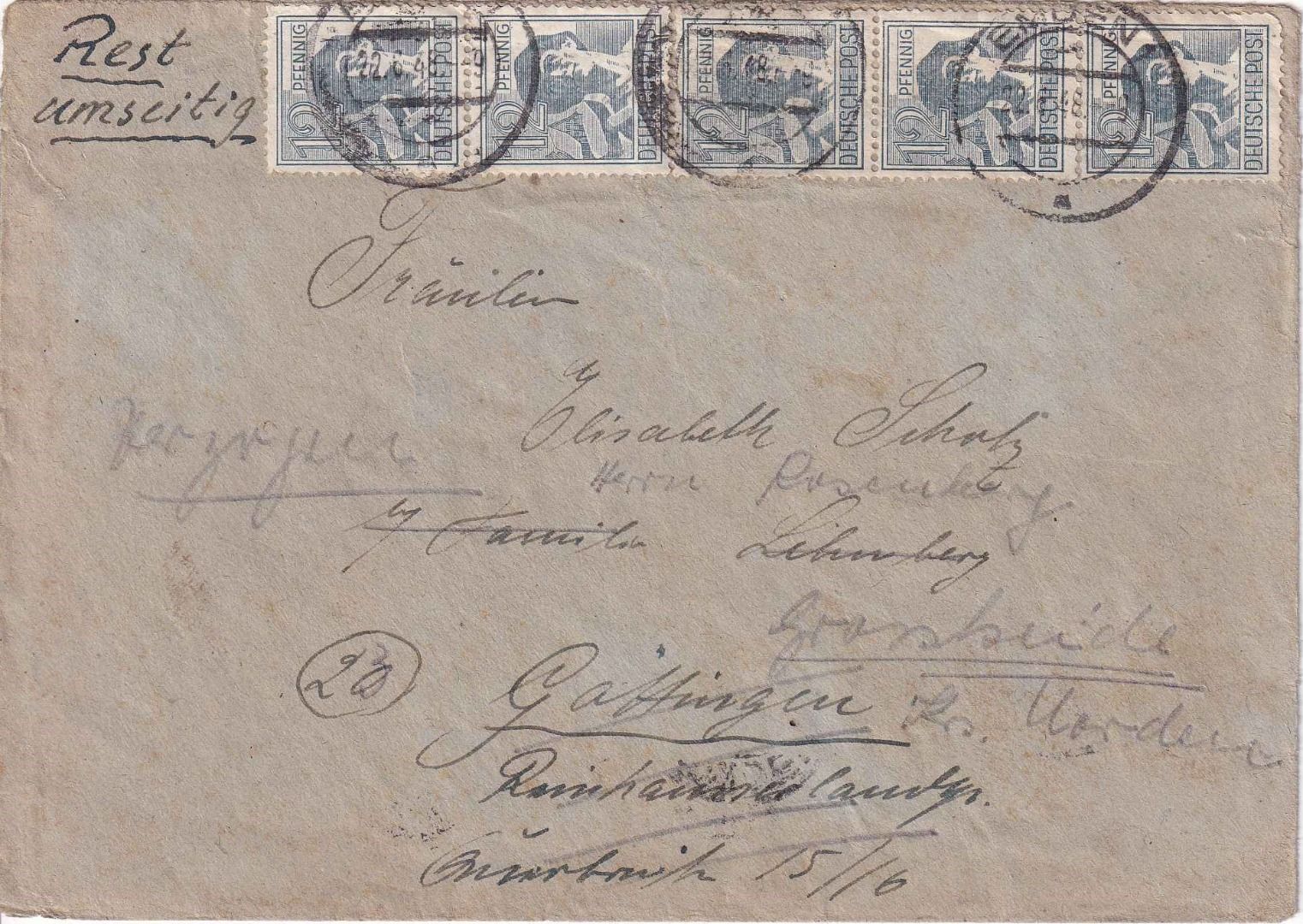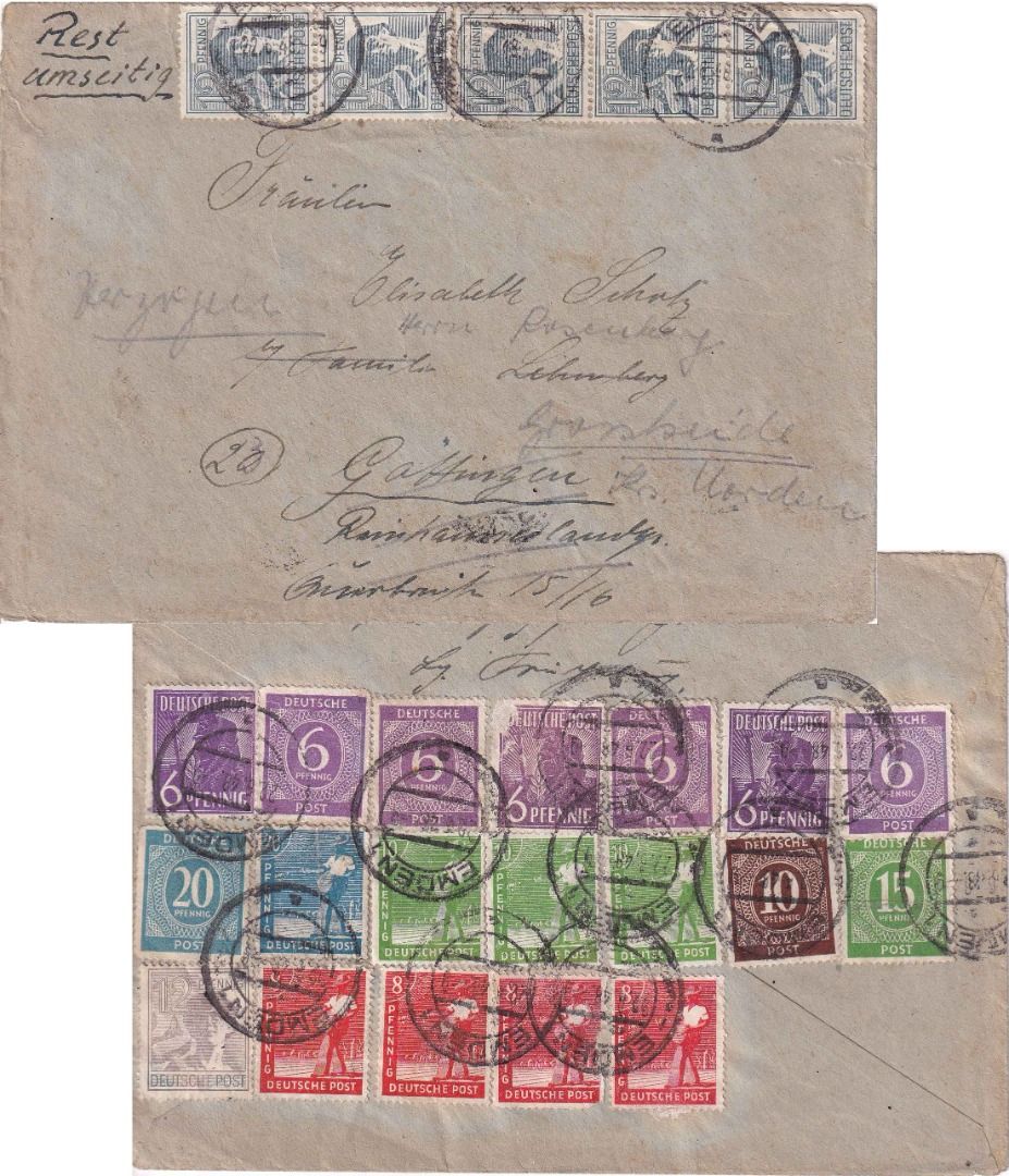Weiterleitung n. Großheide - ohne Inhalt - verklebt: 241 Pfg. - typischer Bedarfsbrief mit Aufbrauch aller im Haushalt auffindbaren Marken