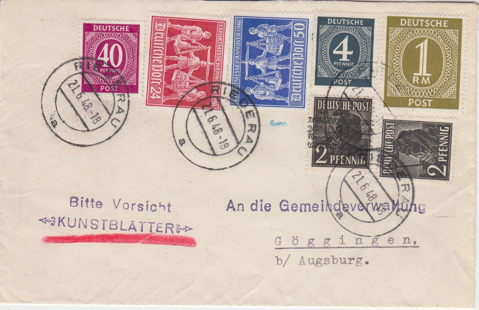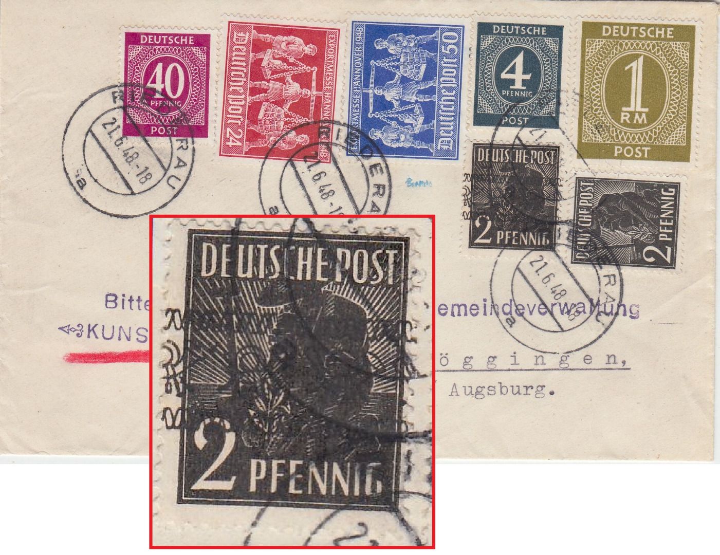 Mischfrankatur alte/neue Währung (ERSTTAG !) - ohne Inhalt - Kuvert rs. kl. Fehlstelle