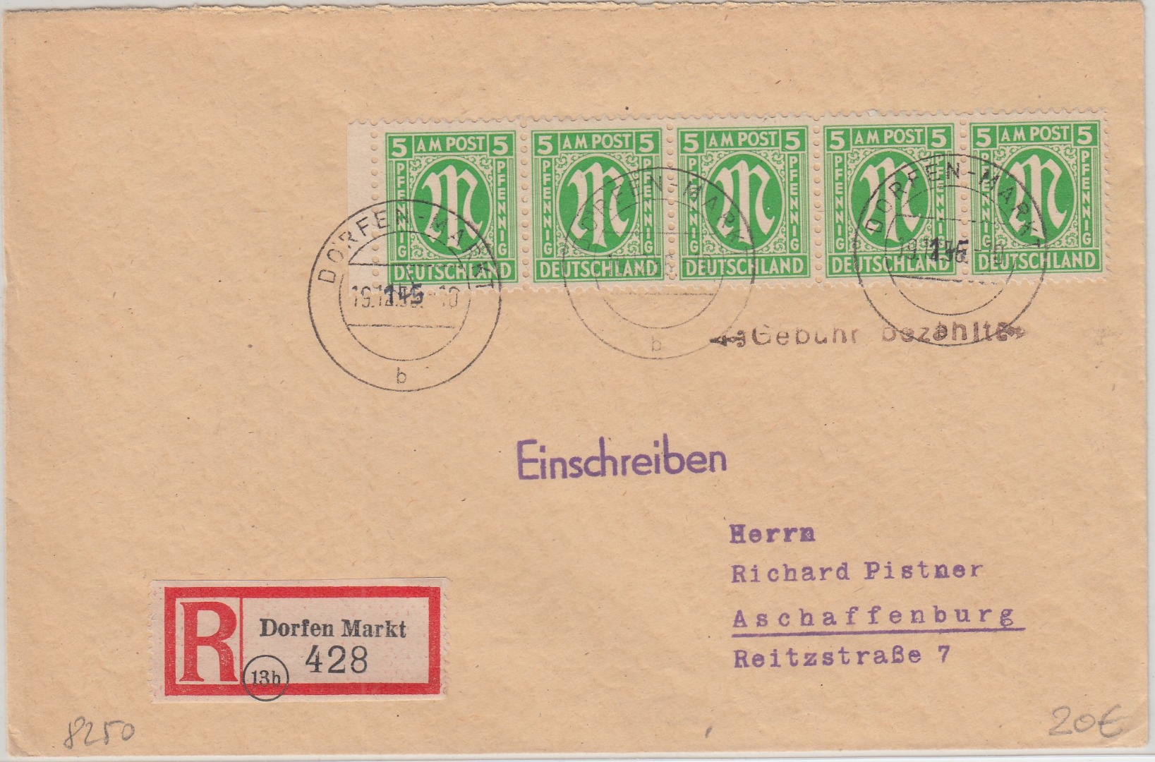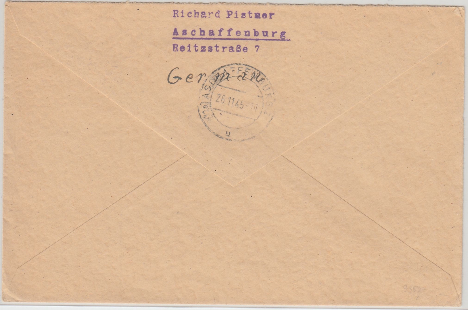 gelaufen n. Aschaffenburg - Datum im Stempel hds. korrigiert - ohne Inhalt