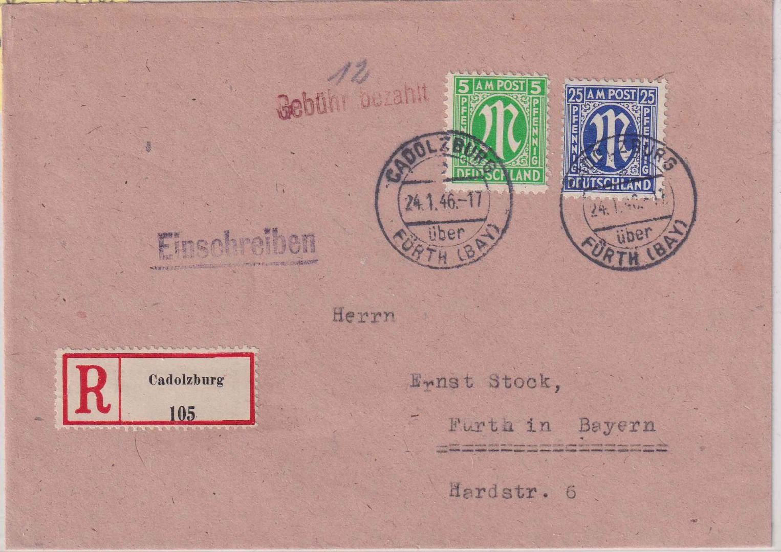 Einschreibegebühr geklebt, Briegebühr bar verrechnet (roter L1 "Gebühr bezahlt") - ohne Inhalt