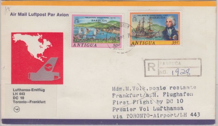 1974 - geplante Zuleitungspost auf Lufthansa Erstflug Toronto-Frankfurt
