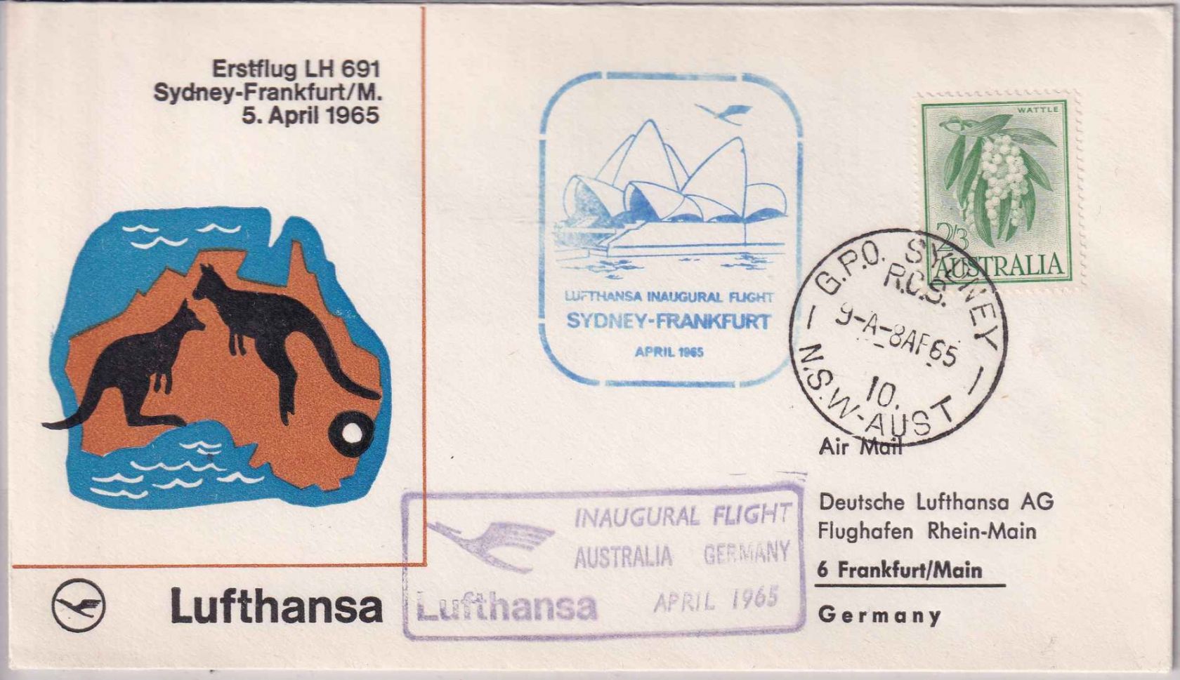Australien - Lufthansa Erstflug Sydney FFM 1965 Schmuckkuvert