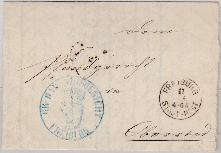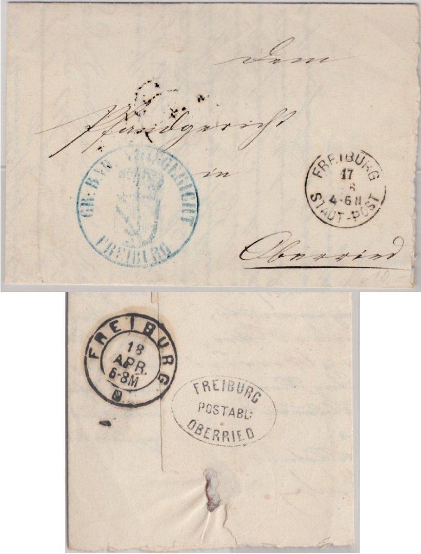 Baden - Freiburg Postablage Oberried Gerichtsbrief Freiburg - Oberried 1870