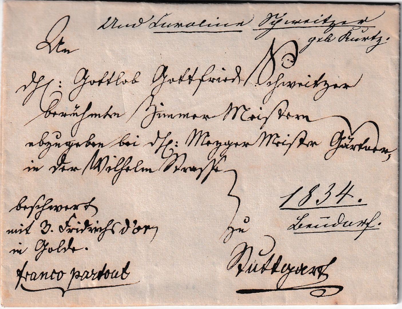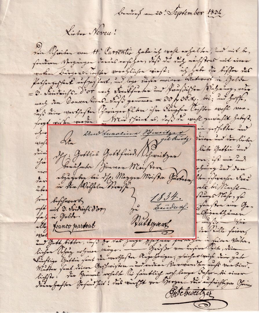 Baden/Württemberg - Bonndorf 1834 Geldbrief/Botenbrief (?) n. Stuttgart