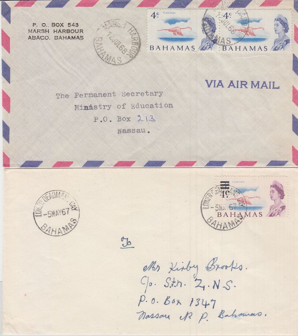 1x Luftpost Marsh Harbour n. Nassau, 1x Brief Lower Deadmans Cay n. Nassau - beide ohne Inhalt