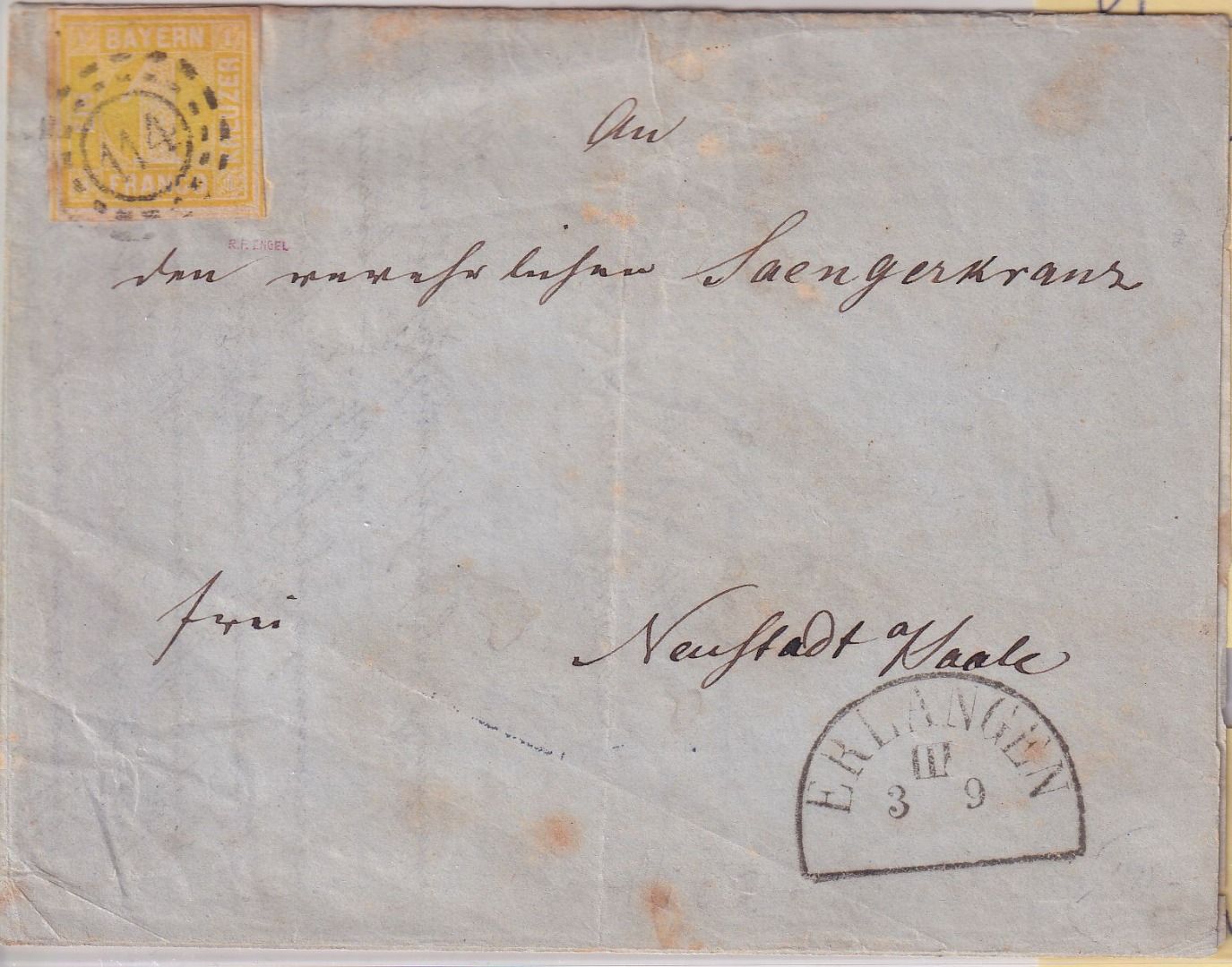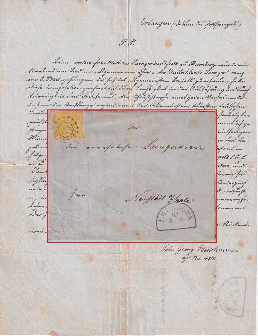 mit Inhalt: gedruckter bericht zum 1. Fränkischen Sängerbundestfest in Bamberg - Altersspuren - Marke voll- bis breitrandig