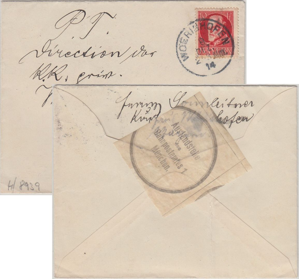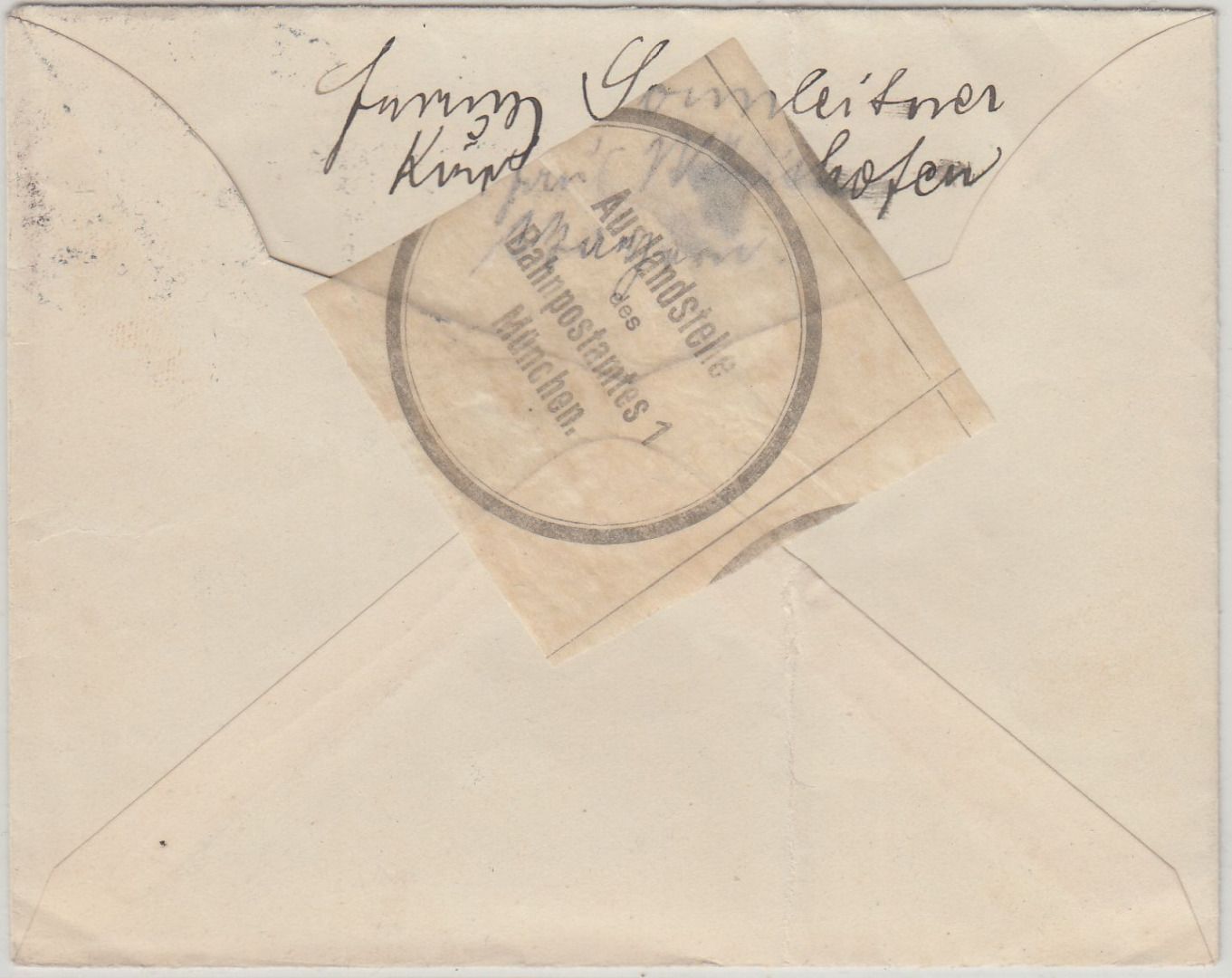 rs. Verschlusszettel der Auslandsstelle des Bahnpostamtes 1 München - ohne Inhalt