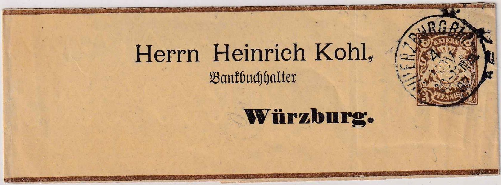 Bayern - 3 Pfg. Wappen Ganzsachenstreifband (Zudruck !) Würzburg Bhf. 4. NOV 97