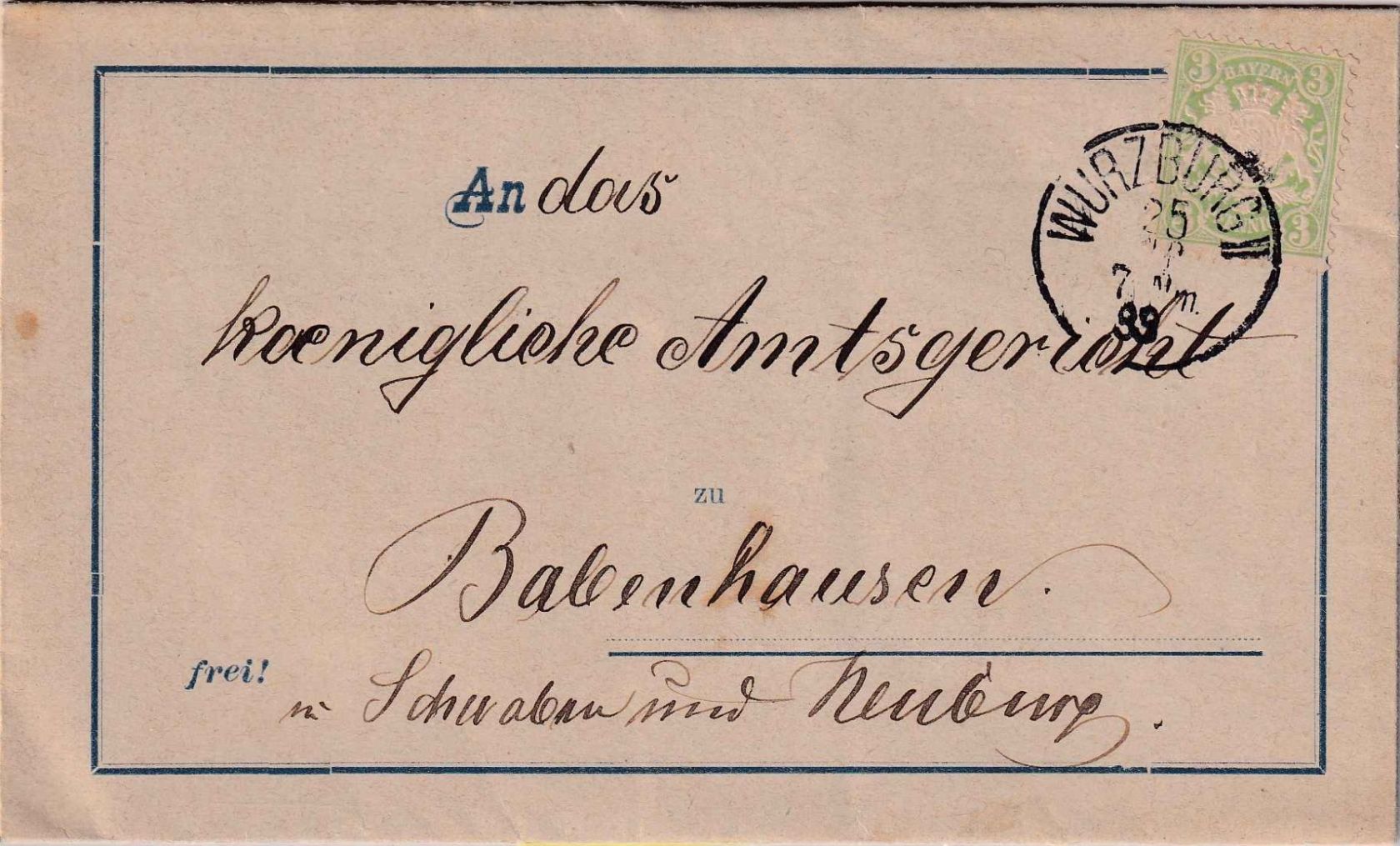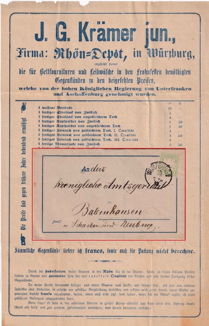 Bayern - 3 Pfg. Wappen Wz. 3 Werbedrucksache Würzburg - Babenhausen 1888