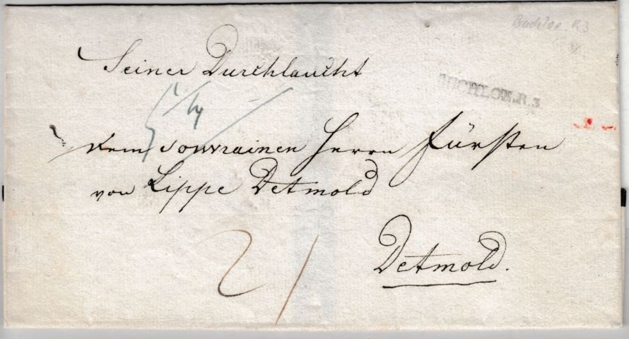 ohne Inhalt - adr. a.d. Fürsten v. Lippe-Detmold - vermutlich auf das Todesjahr König Max I. Joseph zu datieren