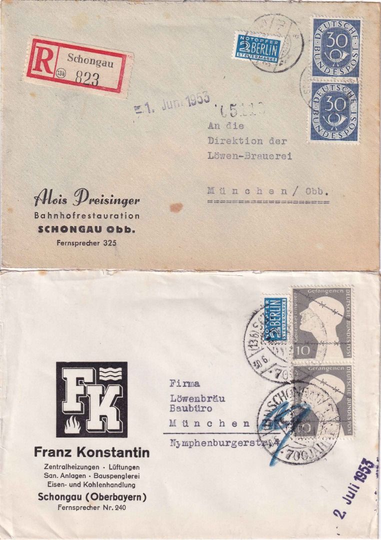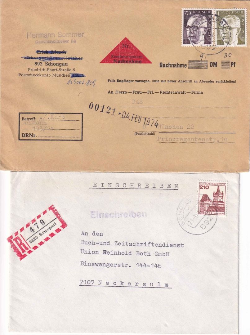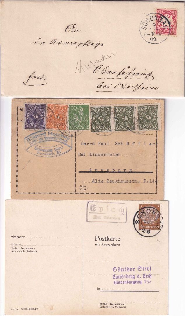 alle Belege abgebildet, darunter Landpost, Einschreibebriefe, Gebühr bezahlt etc. - schöne Basis für eine Heimatsammlung