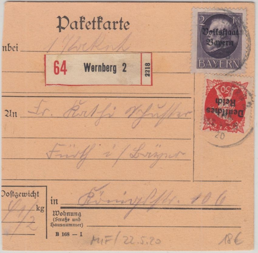 Mischfrankatur 2 M. Ludwig/Volksstaat mit By-Abschied/Aufdruck Deutsches Reich - Übergangszeit