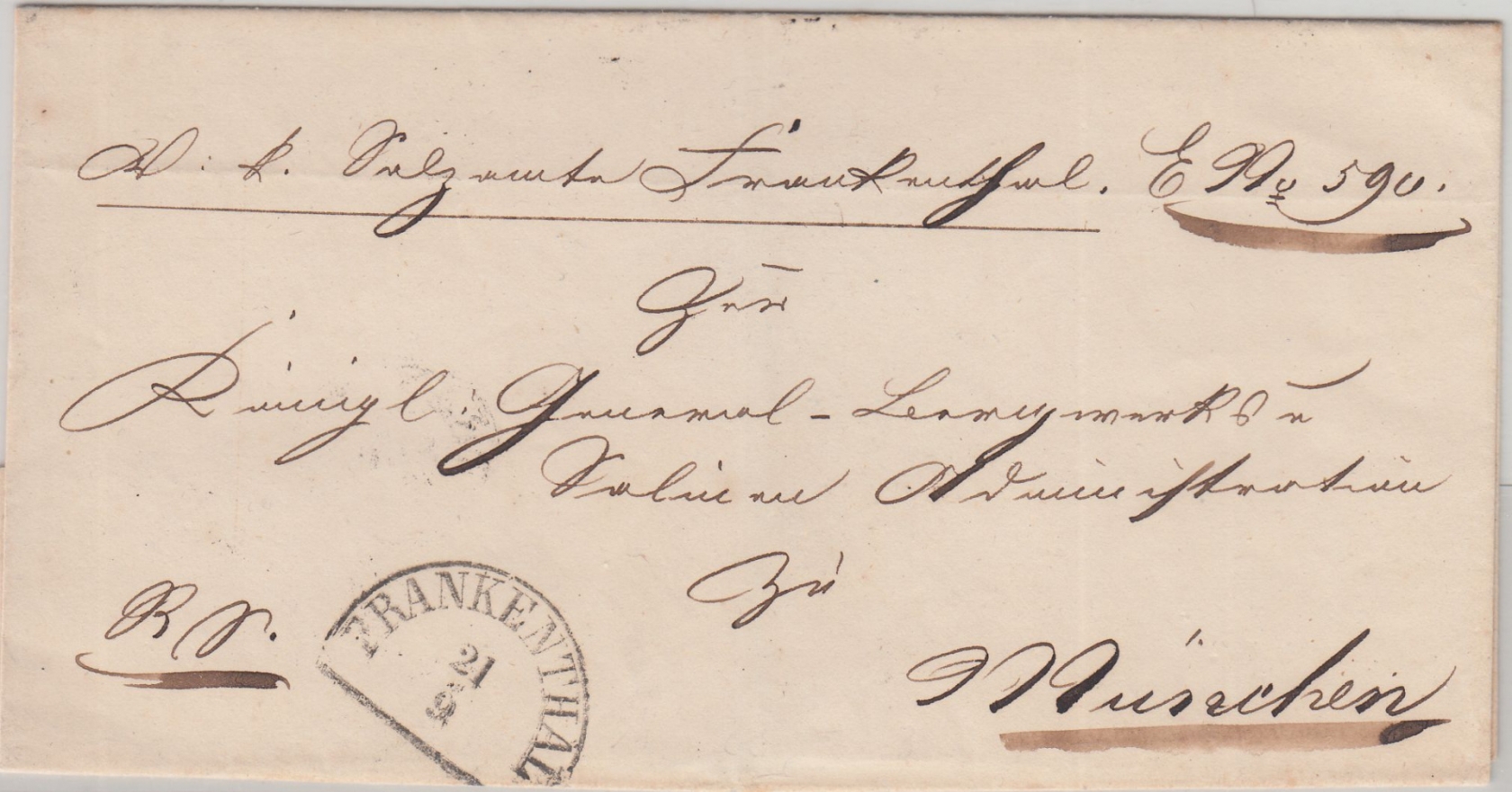 rs. Durchgangsstempel Frankfurt und Ank.-L2 München - ohne Inhalt