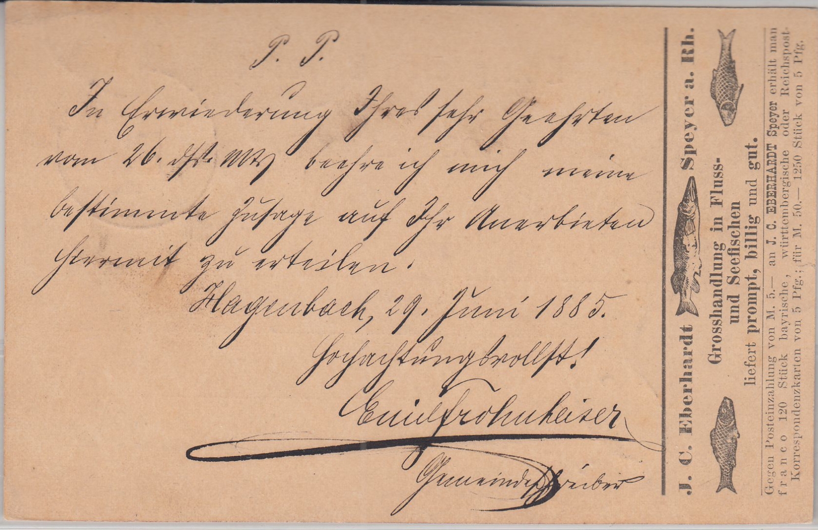 rs. Zudruck Eberhardt Fischhandlung - früher thematischer Zudruck: Fisch, Fischerei
