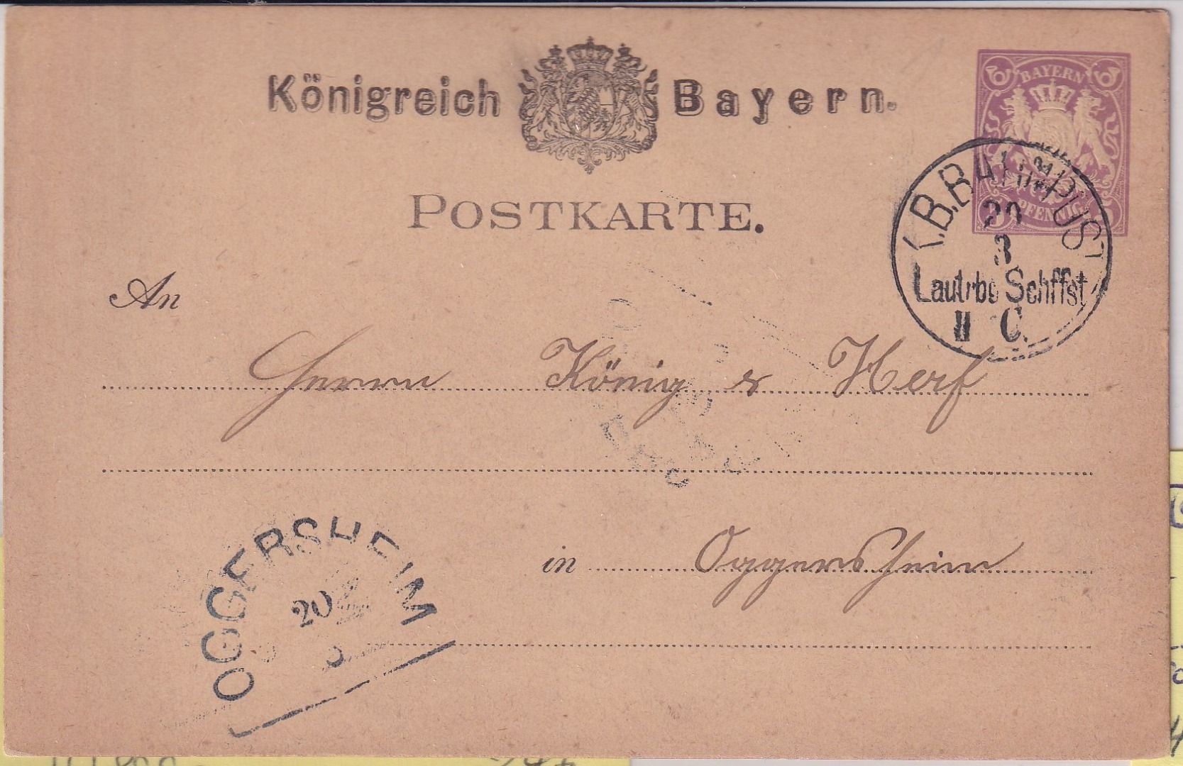 gelaufen n. Oggersheim - Condukteurs-Bahnpost