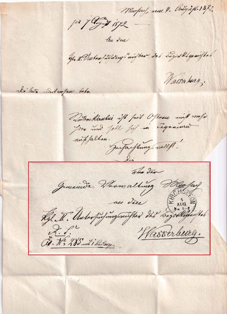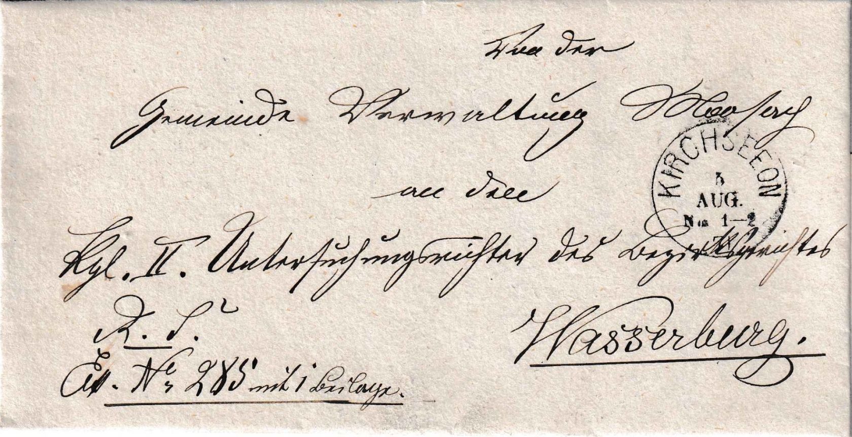 Bayern - Kirchseeon 5. AUG 71 (20b) K1 Dienstbrief n. Wasserburg - mit Inhalt