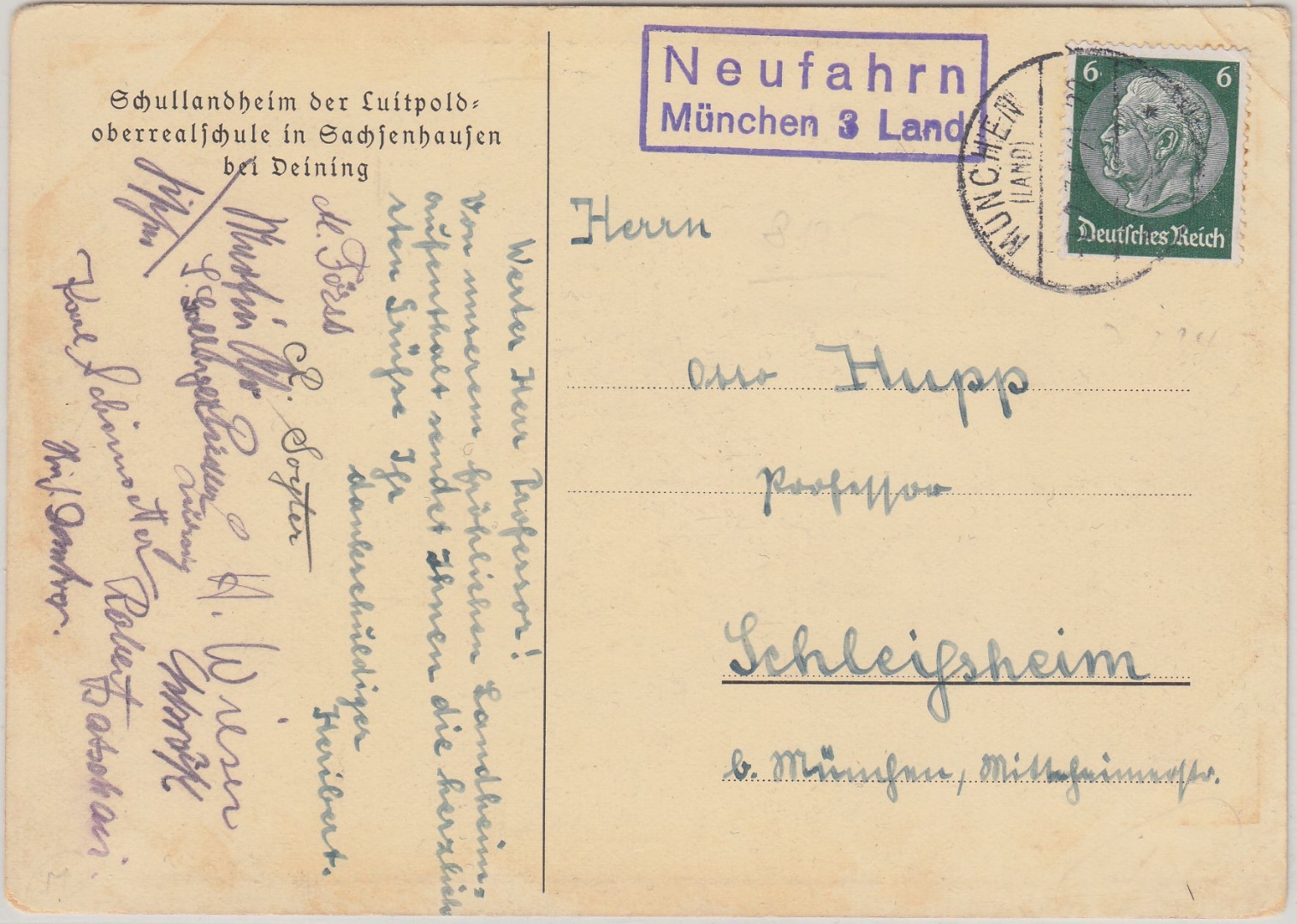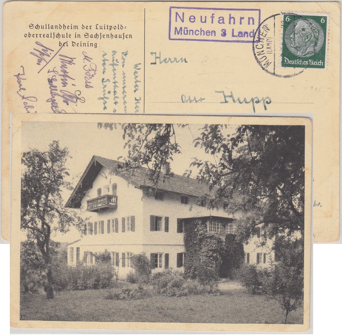 "Schullandheim der Luitpoldoberrealschule in Sachsenhausen bei Deining" - Karte rechts oben kl. Eckbug