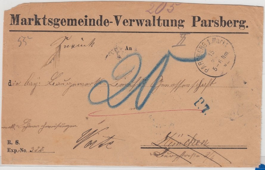 Kuvert li. etwas verkürzt (2-seitig offen) - Münchner Portostpl. "P7"