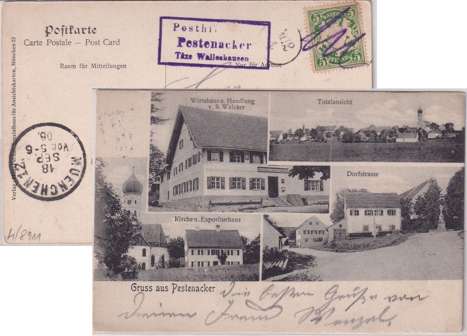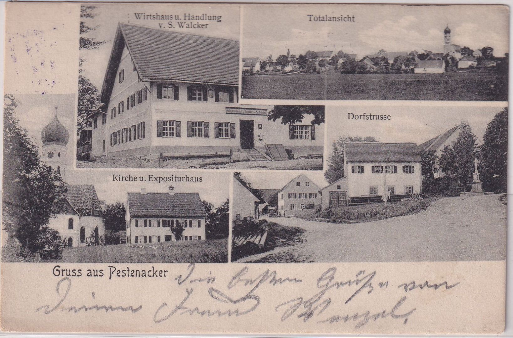 gelaufen n. München - rs. sw-Mehrbildansicht: Pestenacker Wirtshaus, Dorfstraße etc.