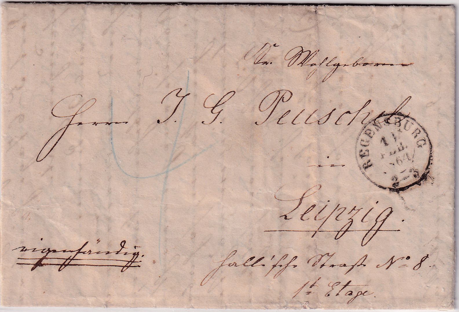 Bayern/Sachsen - Regensburg 1864 OPA-K2 Portobrief (eigenhändig) n. Leipzig