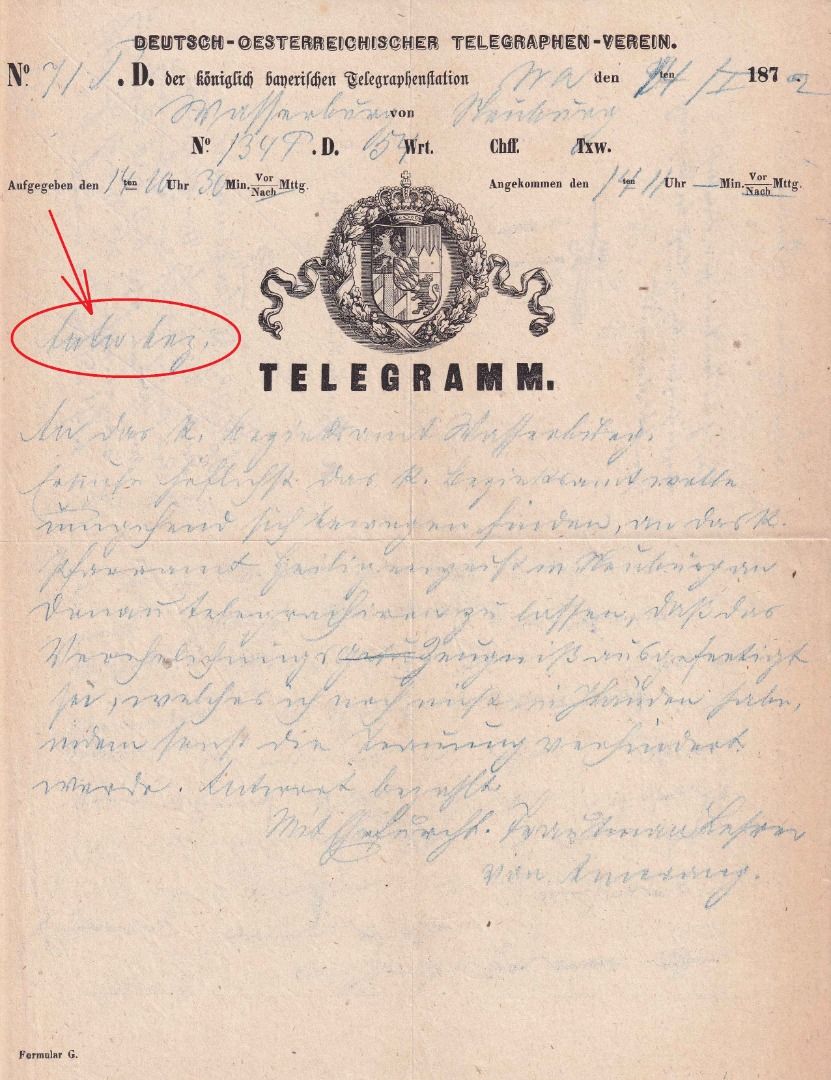handschriftlicher Vermerk "Antw (ort) bez(ahlt)" - dringliche Anforderung eines Verehelichungszeugnisses da sonst die Trauung "platzt" - mit vorausbezahlter Antwort ungewöhnlich !