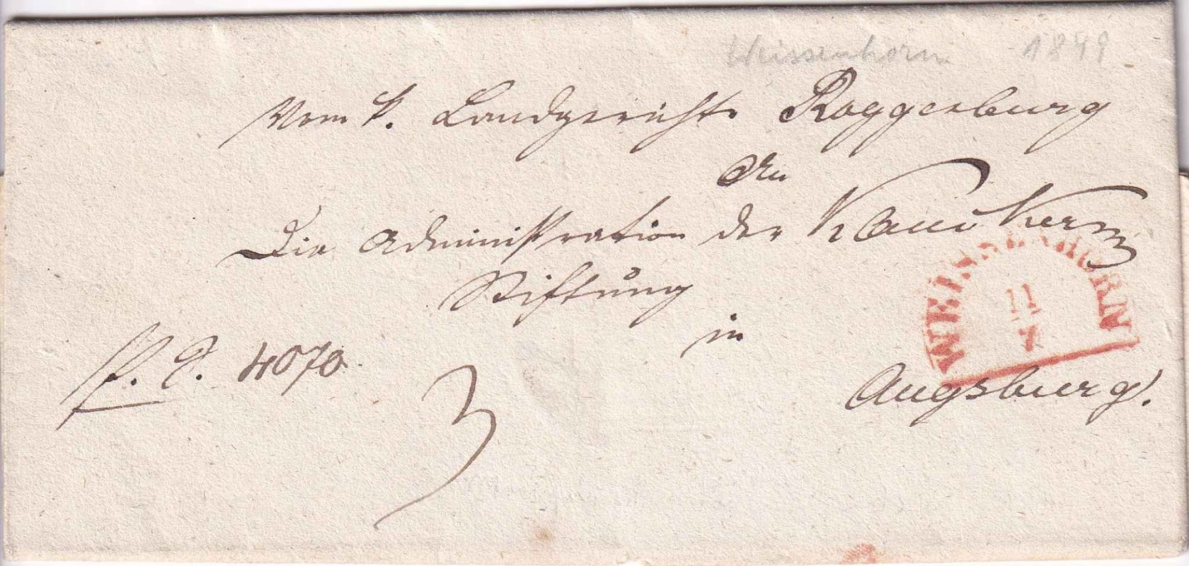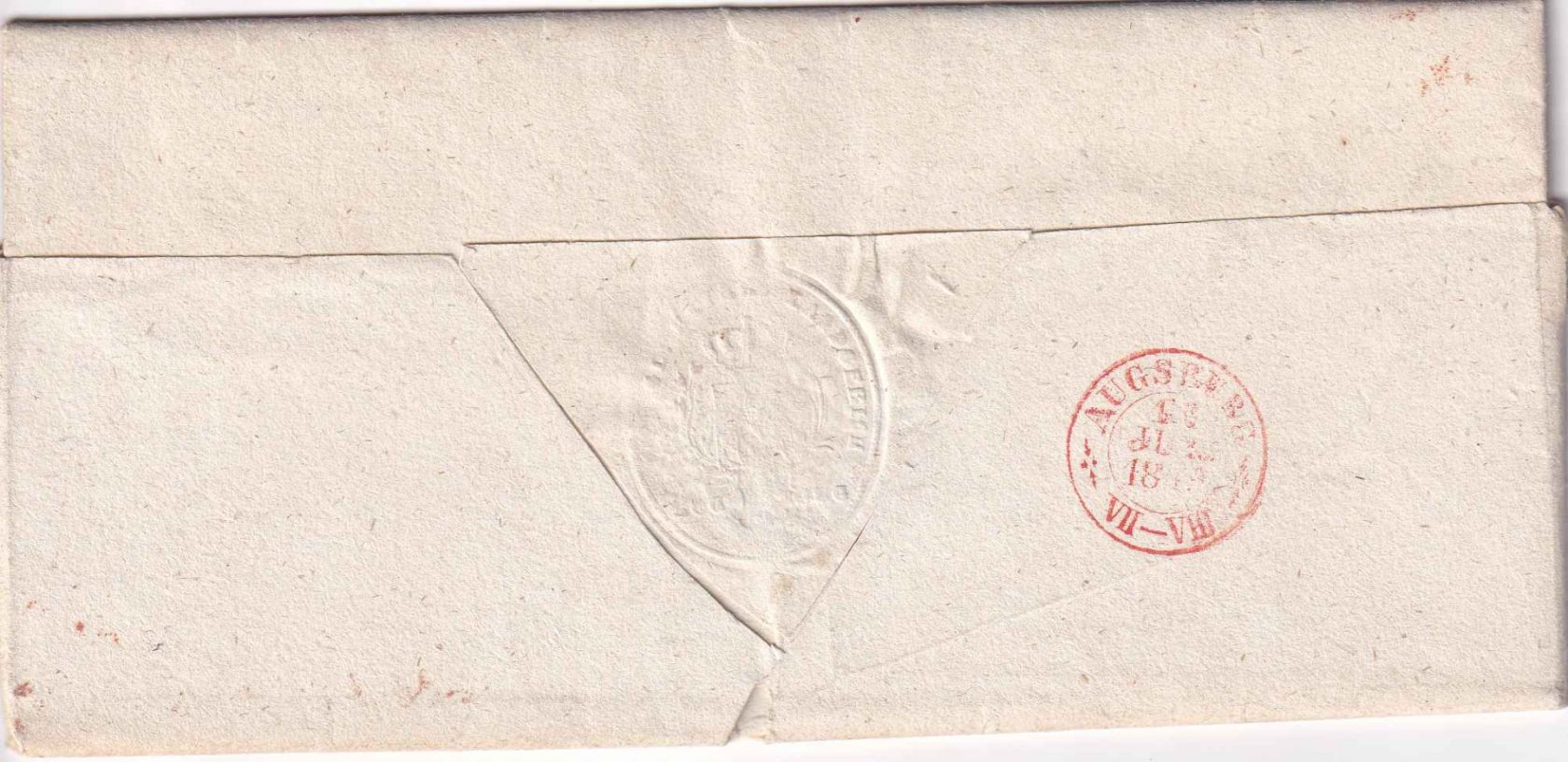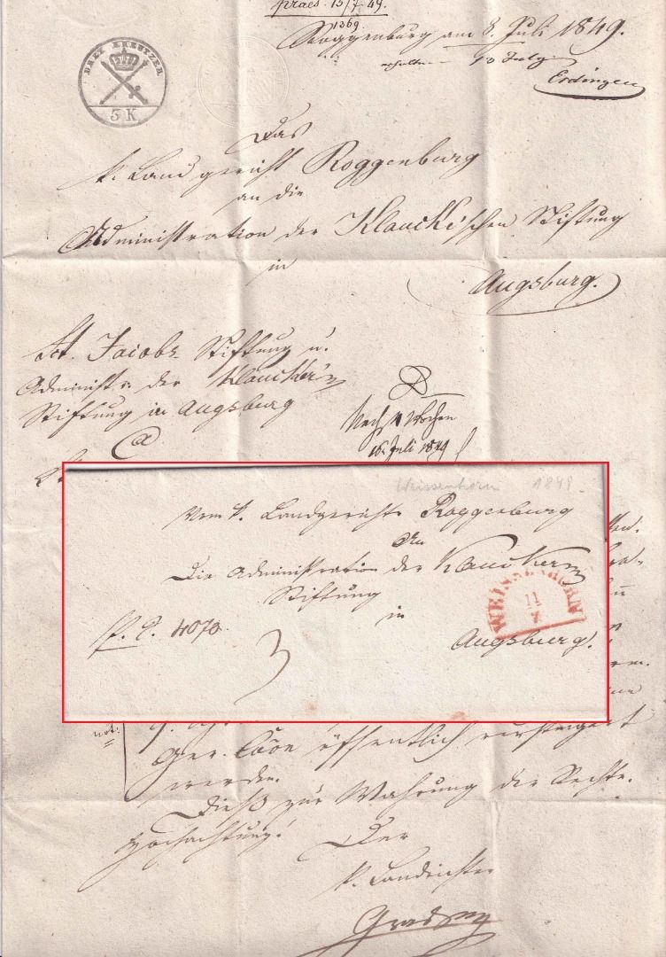 innen 3 Kr. Stempelpapier - rs. roter OPA-K2 Augsburg - mit Inhalt