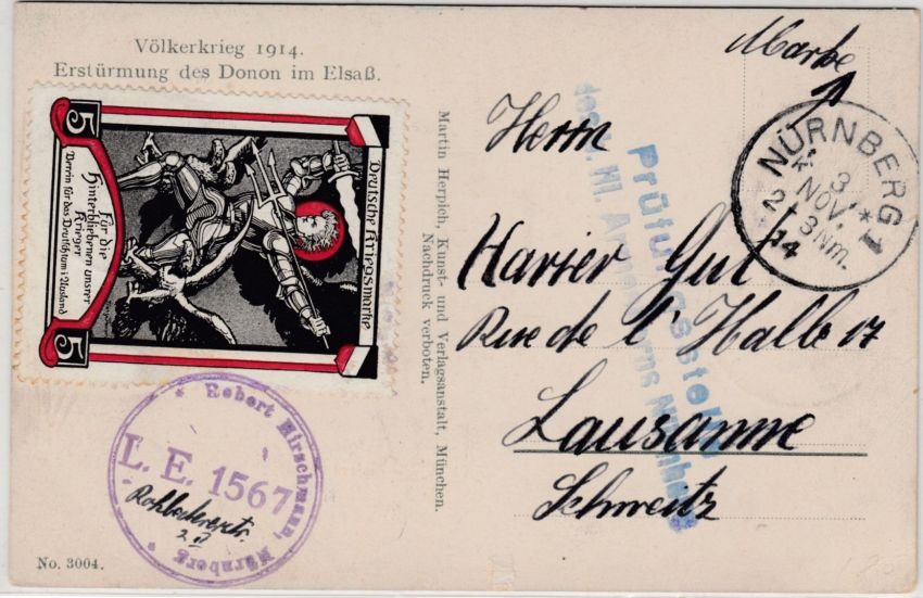 Lausanne - 5 Pfg. Patriotika-Vignette/Spendenmarke f. Hinterbliebene