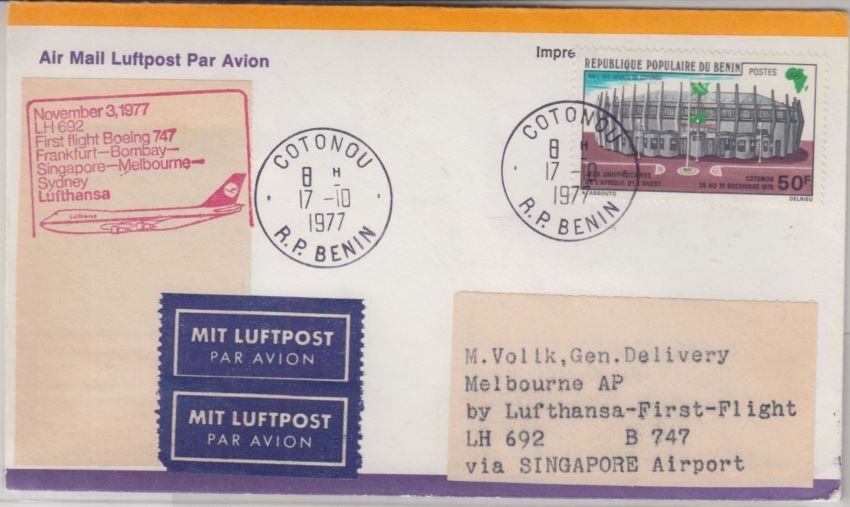 Lufthansa 1st-Flug FFM-Sydney (Etappe Singapore - Melbourne) - selten !!