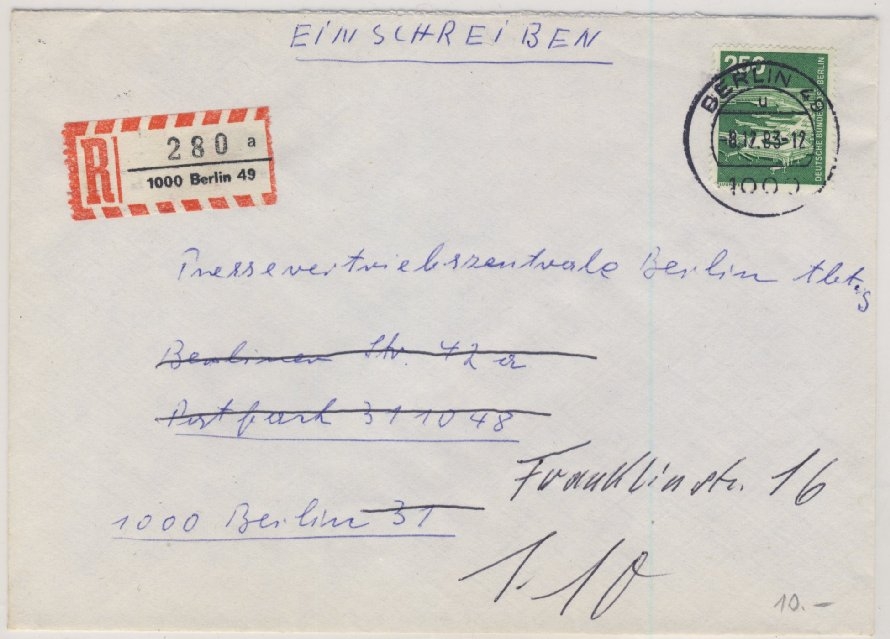 Berlin - 250 Pfg. I&T Einschreiben Ortsbrief 1. Gewichtsstufe Berlin 49 - 1983