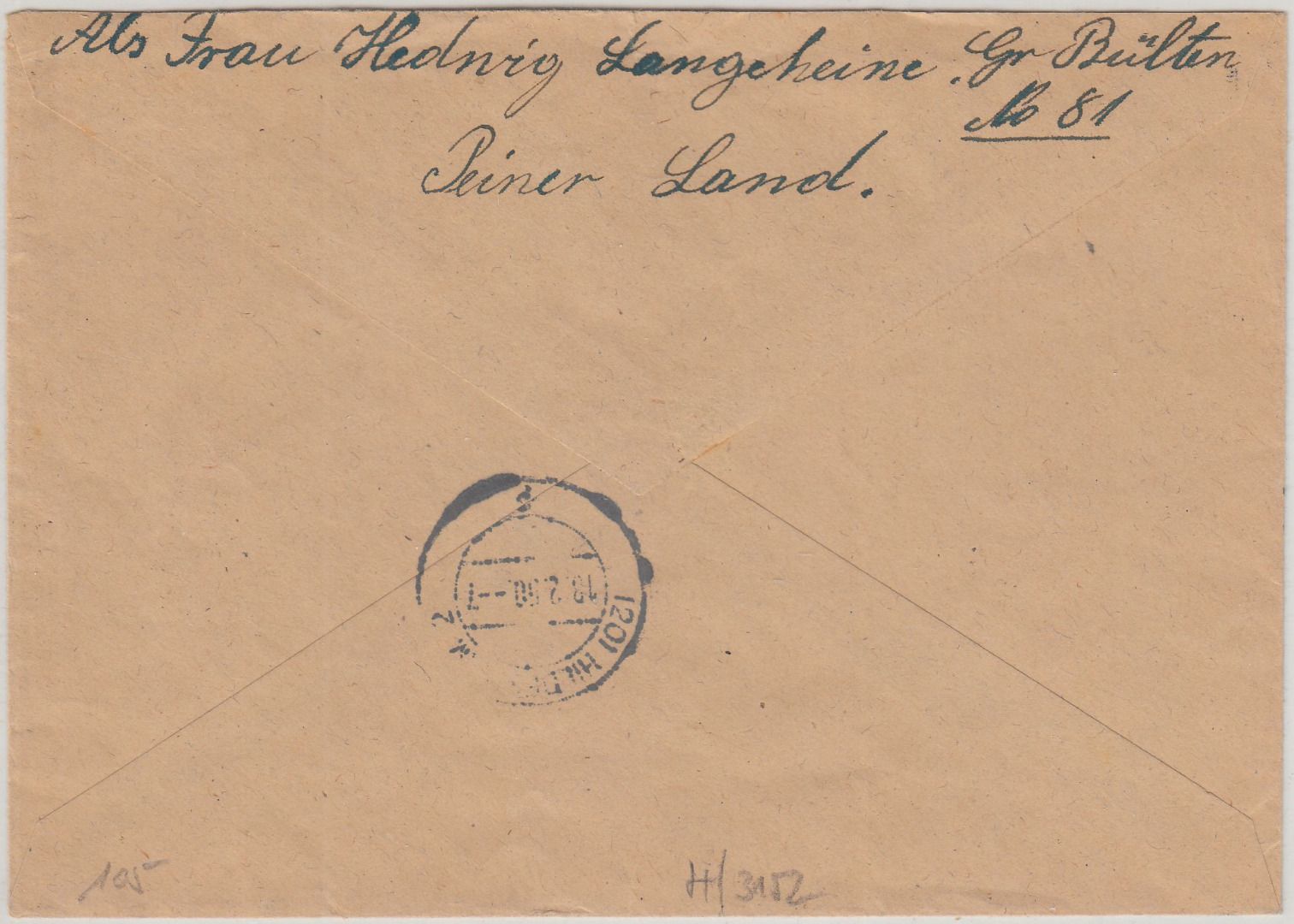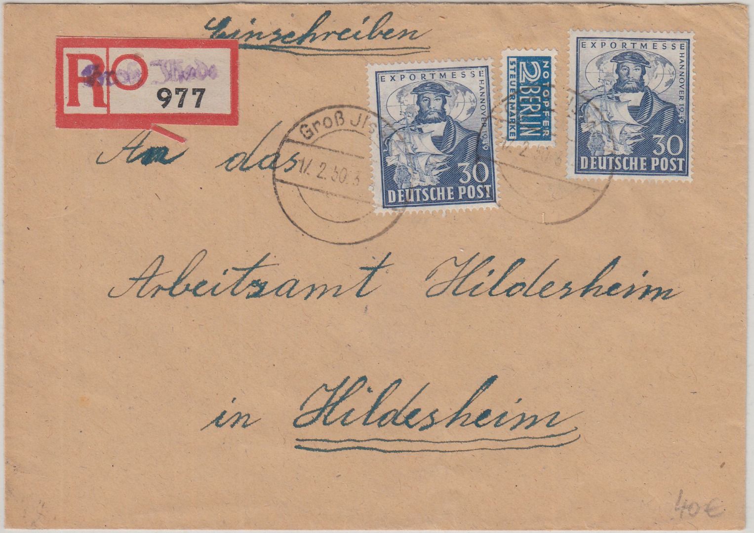 gelaufen n. Hildesheim - Aushilfs-R-Zettel mit Orts-L1 - ohne Inhalt