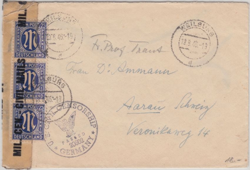 n. Aarau - US-Zensur 20602 (Offenbach a/M.) - ohne Inhalt