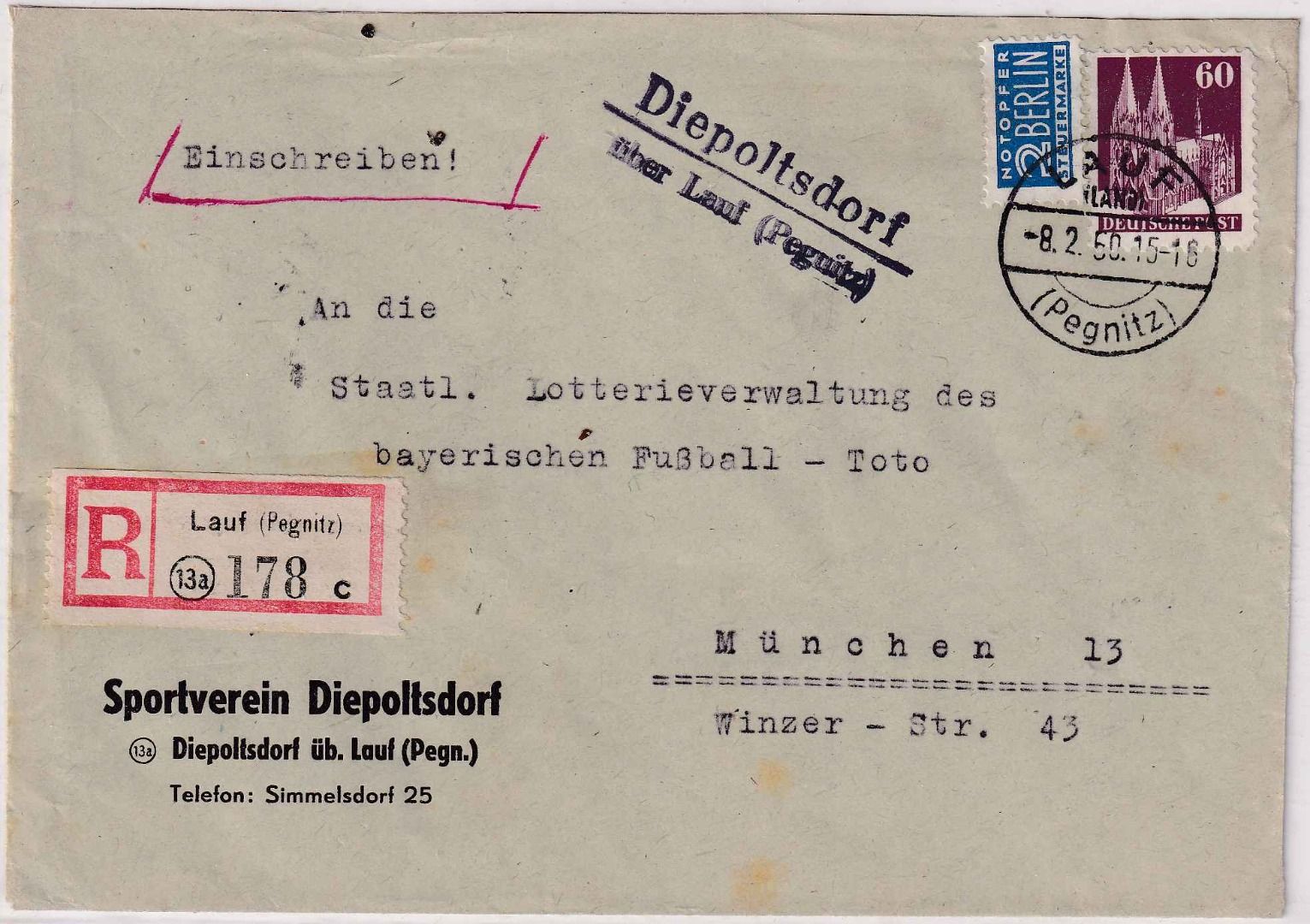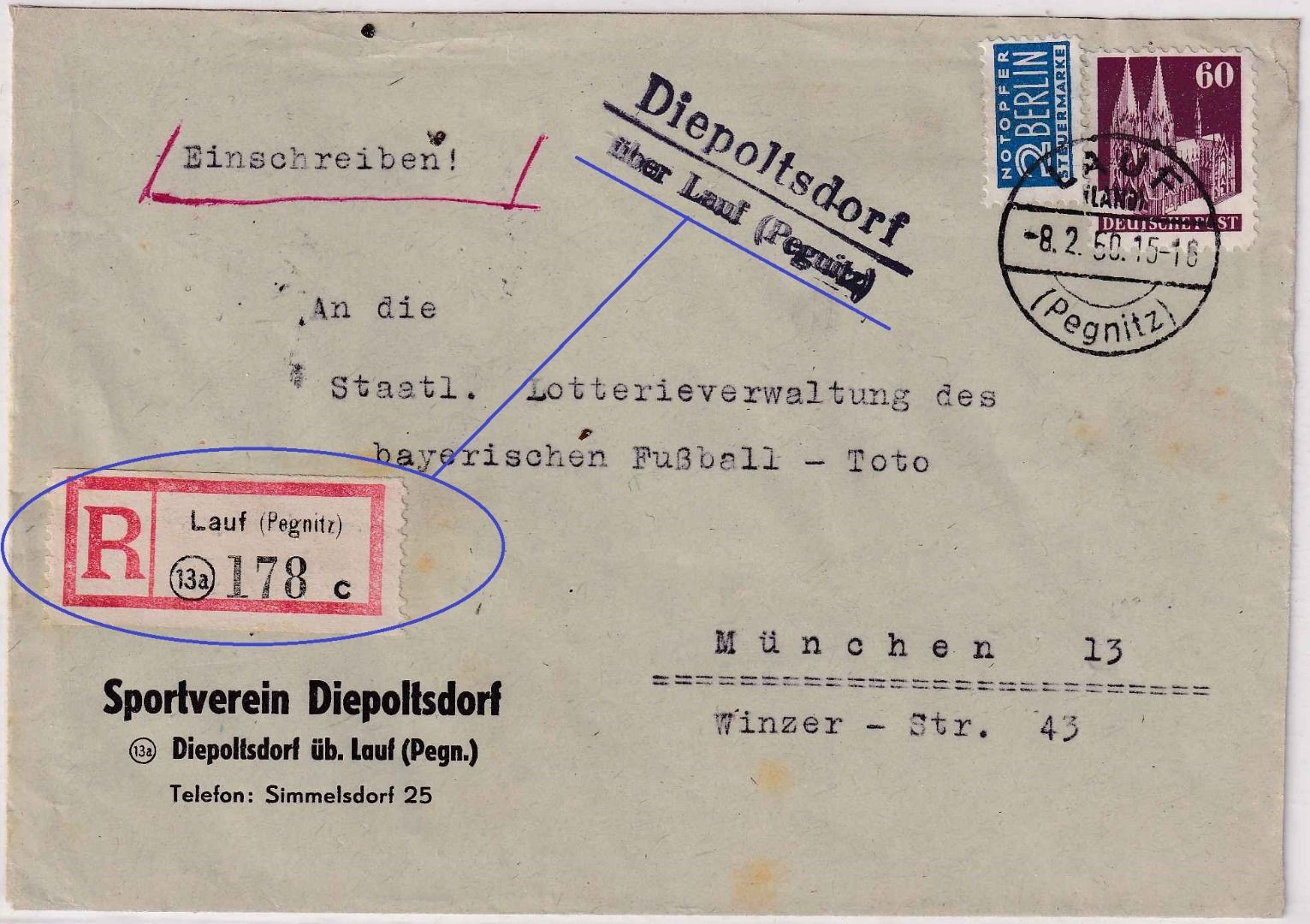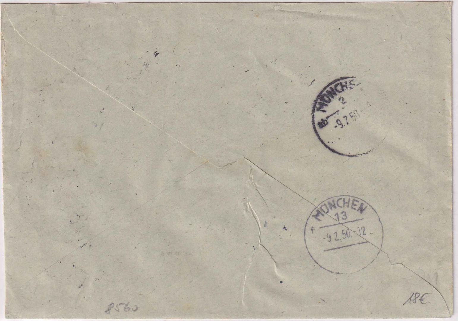 gelaufen n. München - R-Zettel der übergeordneten Poststelle (!) - ohne Inhalt