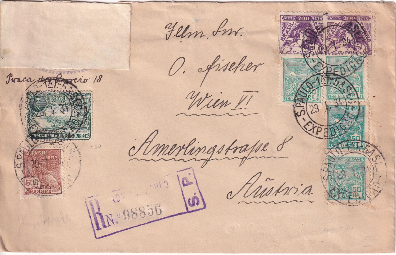 gelaufen v. Sao Paulo n. Wien - ohne Inhalt