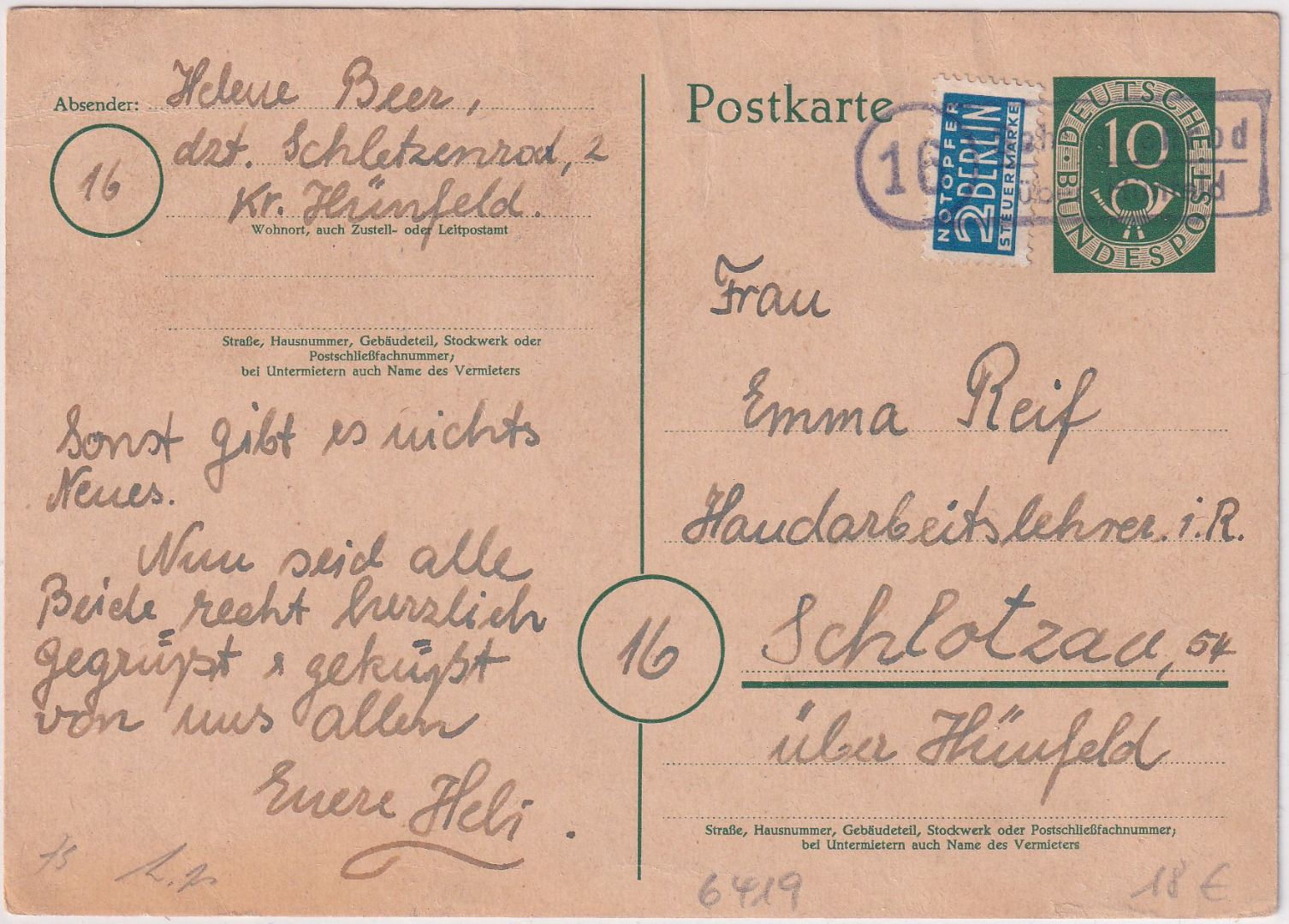 gelaufen in den Landbestellbereich von Hünfeld n. Schlotzau - Landpoststempel als alleiniger Entwerter