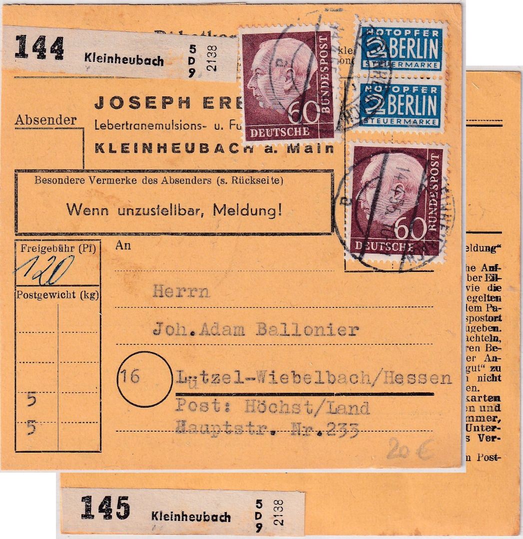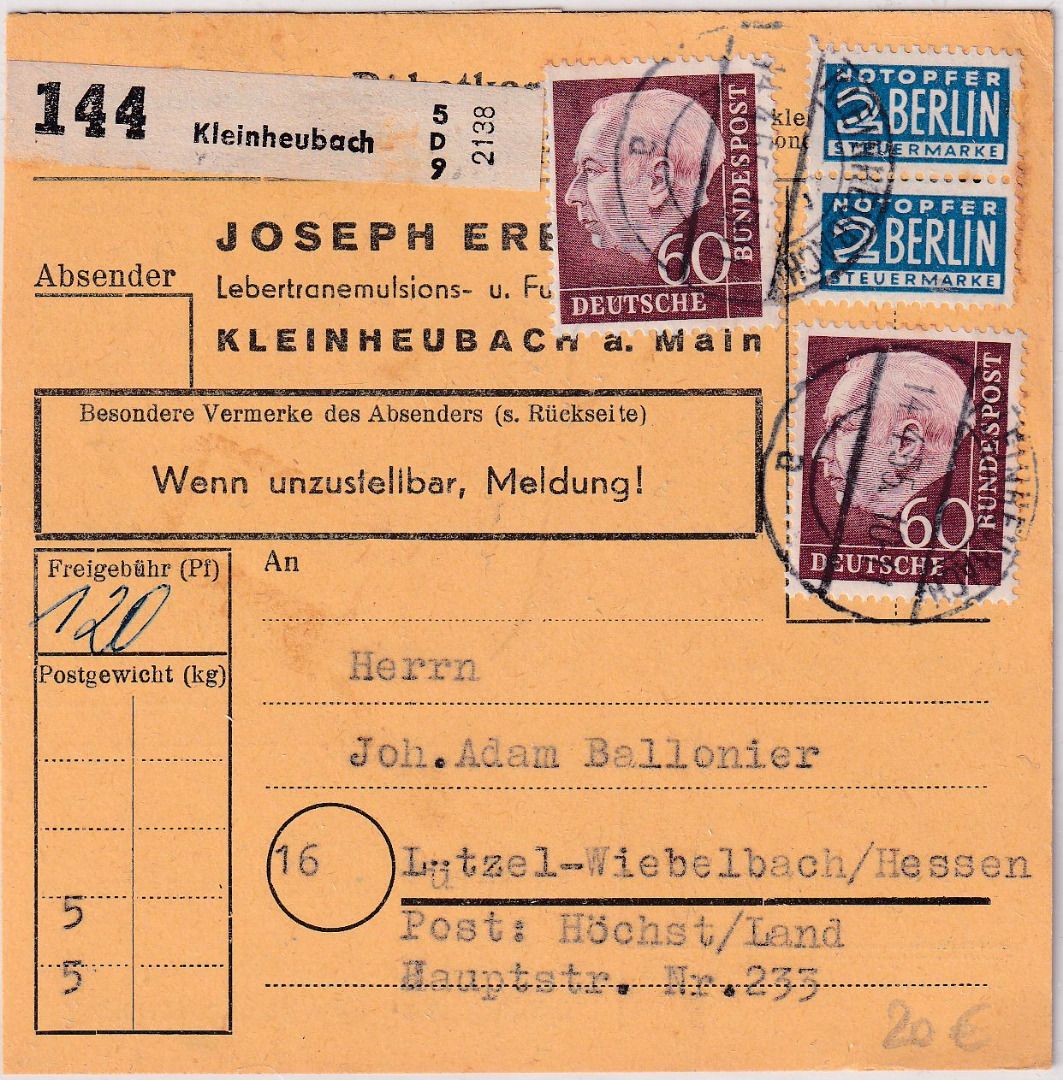 gelaufen n. Höchst (Land) - Notopfer senkr. Paar