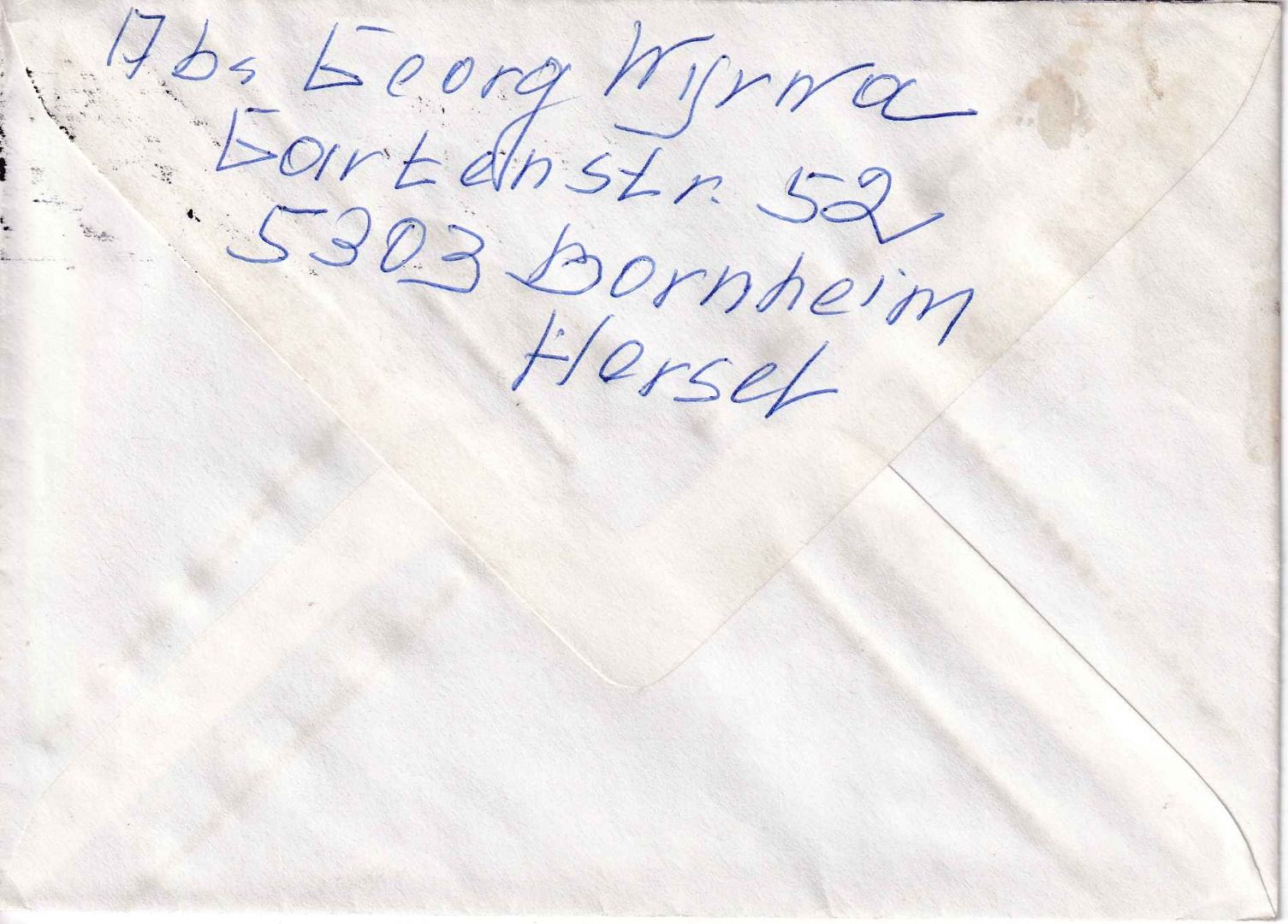 adr. nach Herzberg - Retourvermerk und Hinweiszettel des PA Bonn - ohne Inhalt