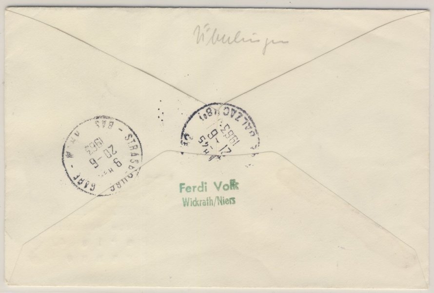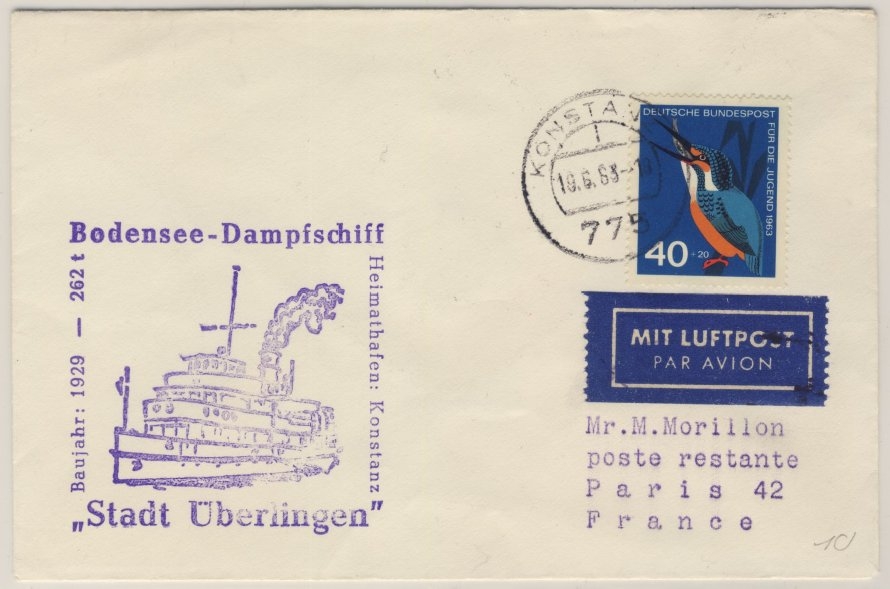 BRD - Bodensee Schiffspost DS Stadt Überlingen Luftpostbrief n. FRANKREICH 1963