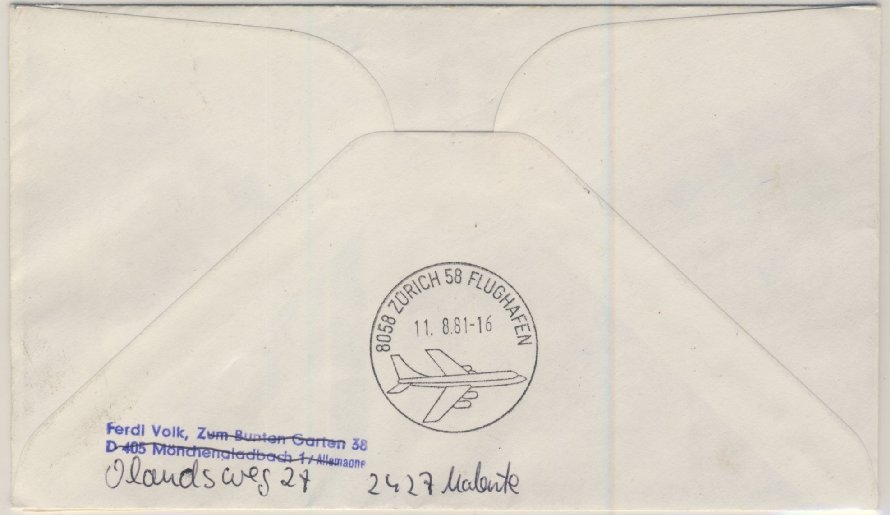 ursprünglich in die Schweiz gesandt und retour - möglicher senkr./waagr. Farbstreifen = Scan-Fehler