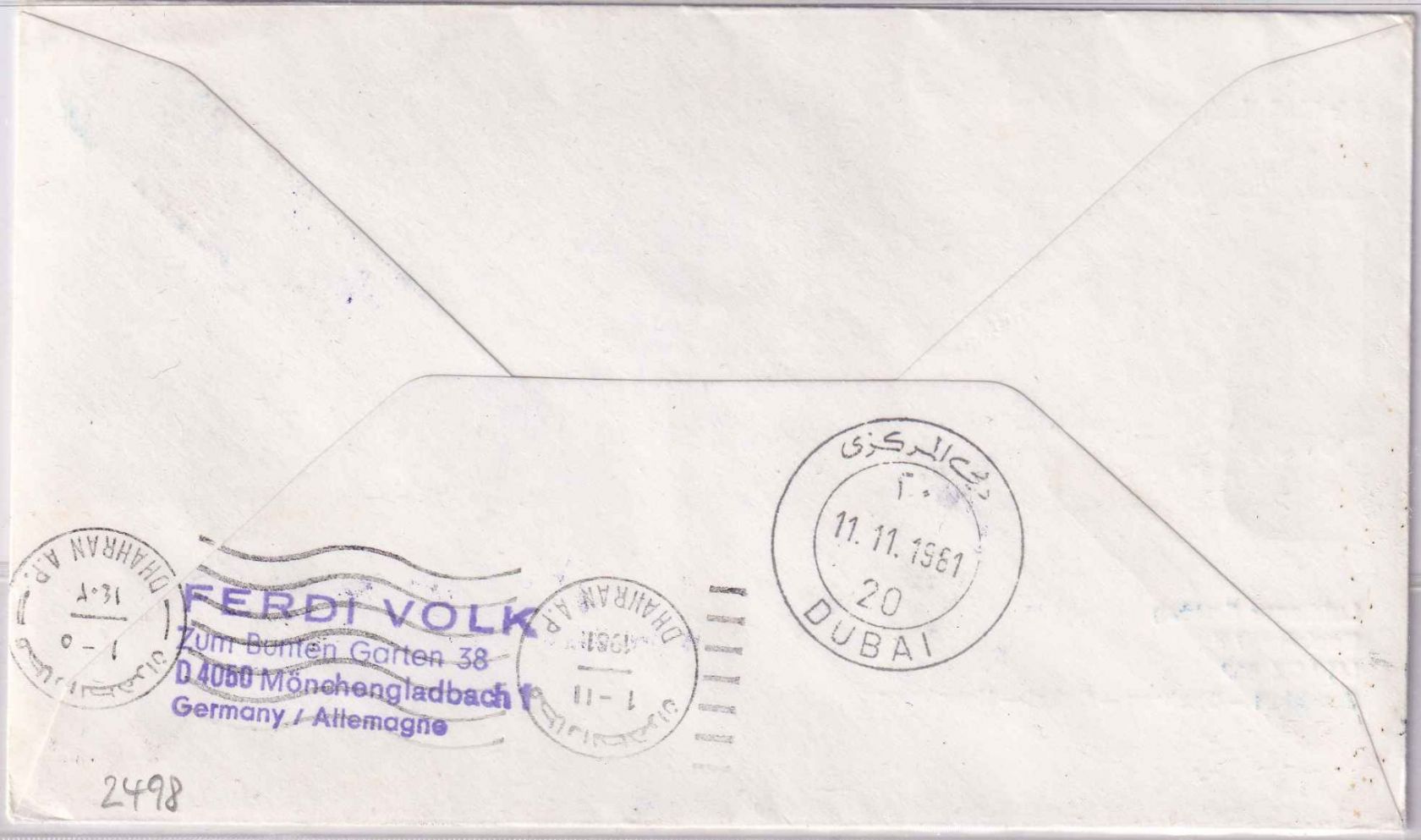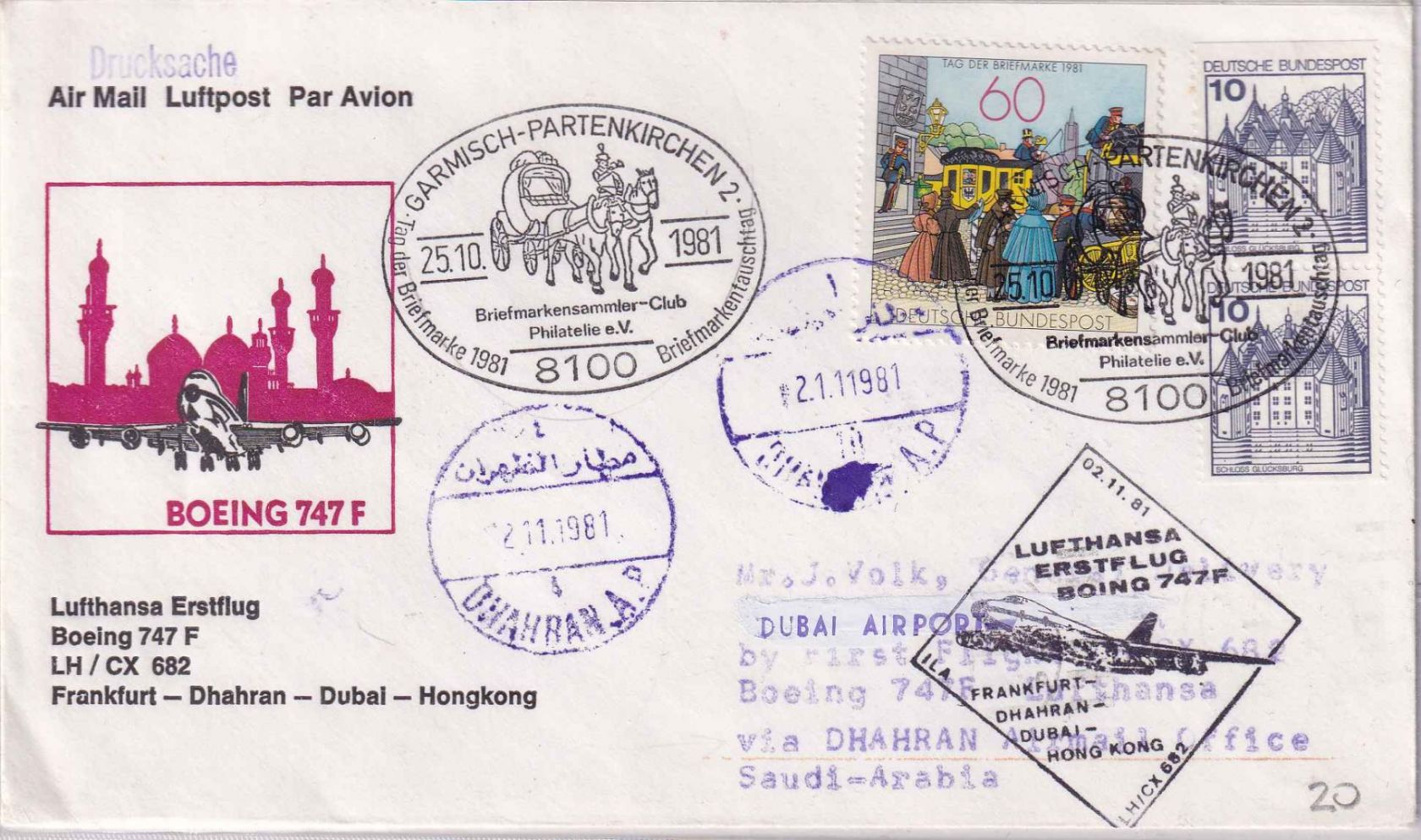 Zuleitungspost zum Lufthansa-Erstflug Dhahran/Dubai