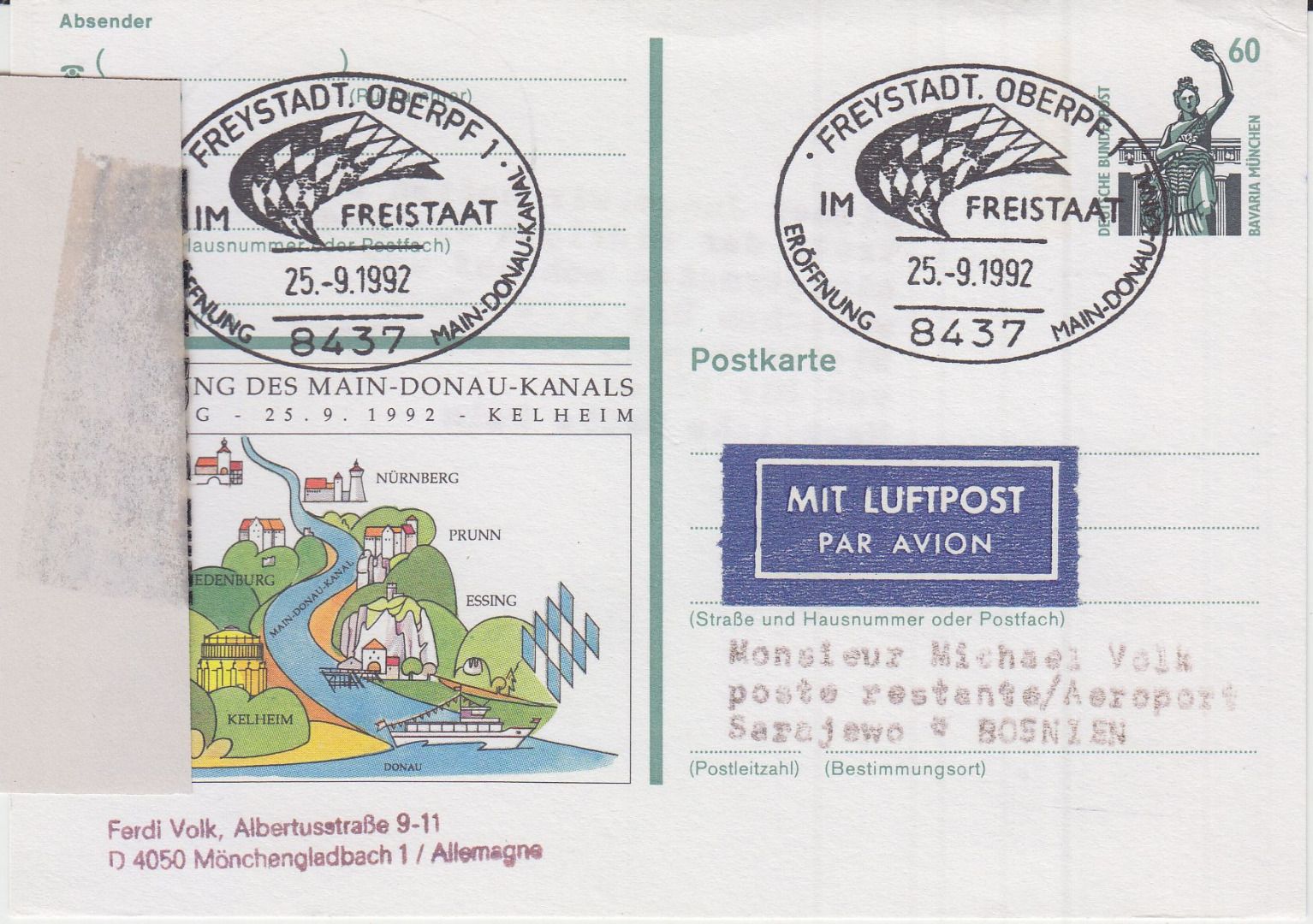 Sonderganzsache mit entspr. SST Freystadt "Eröffnung Main-Donau-Kanal"