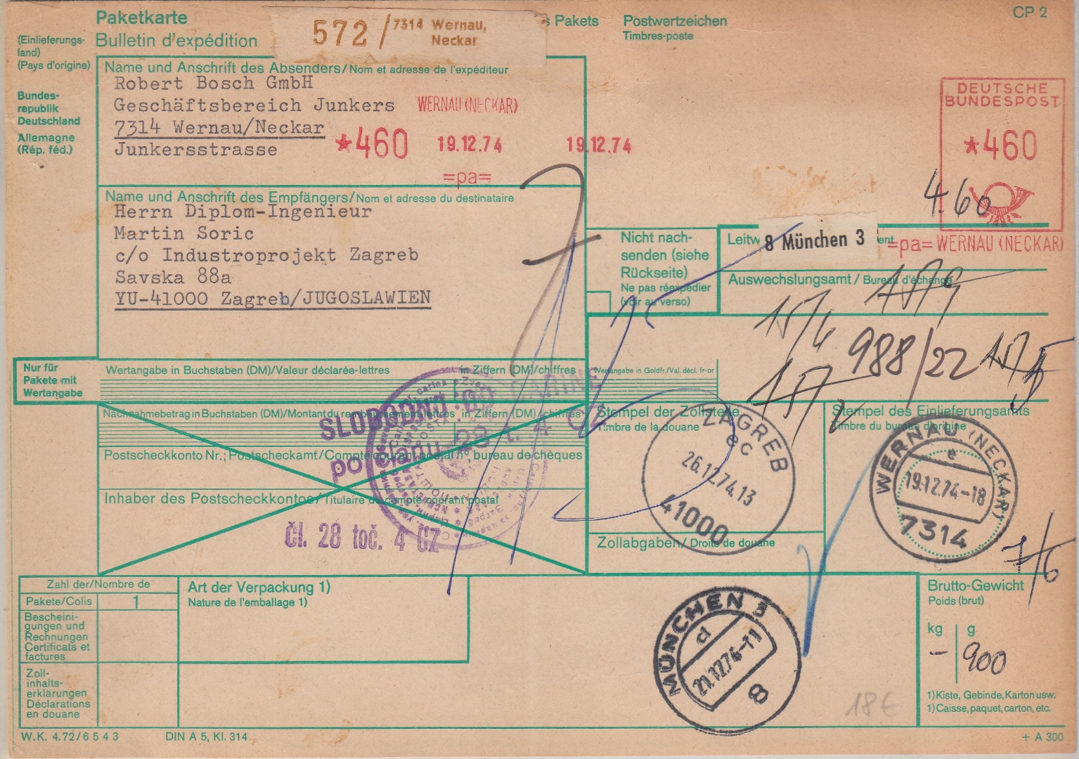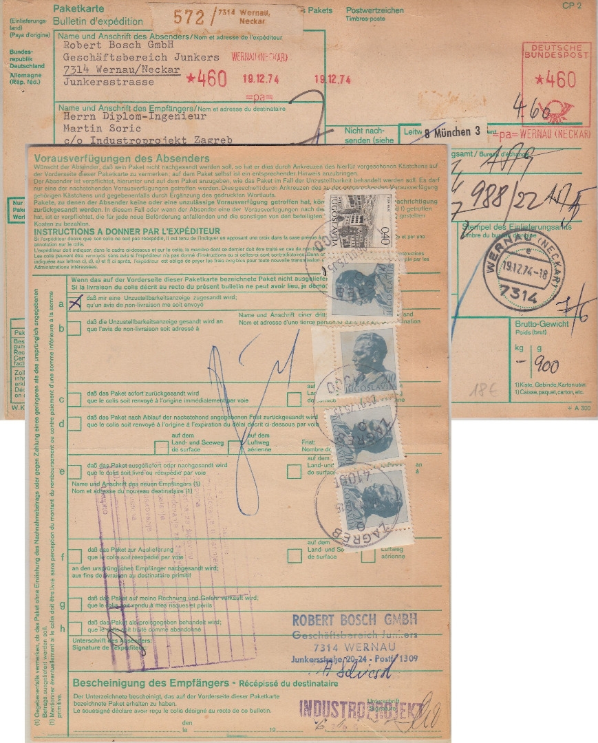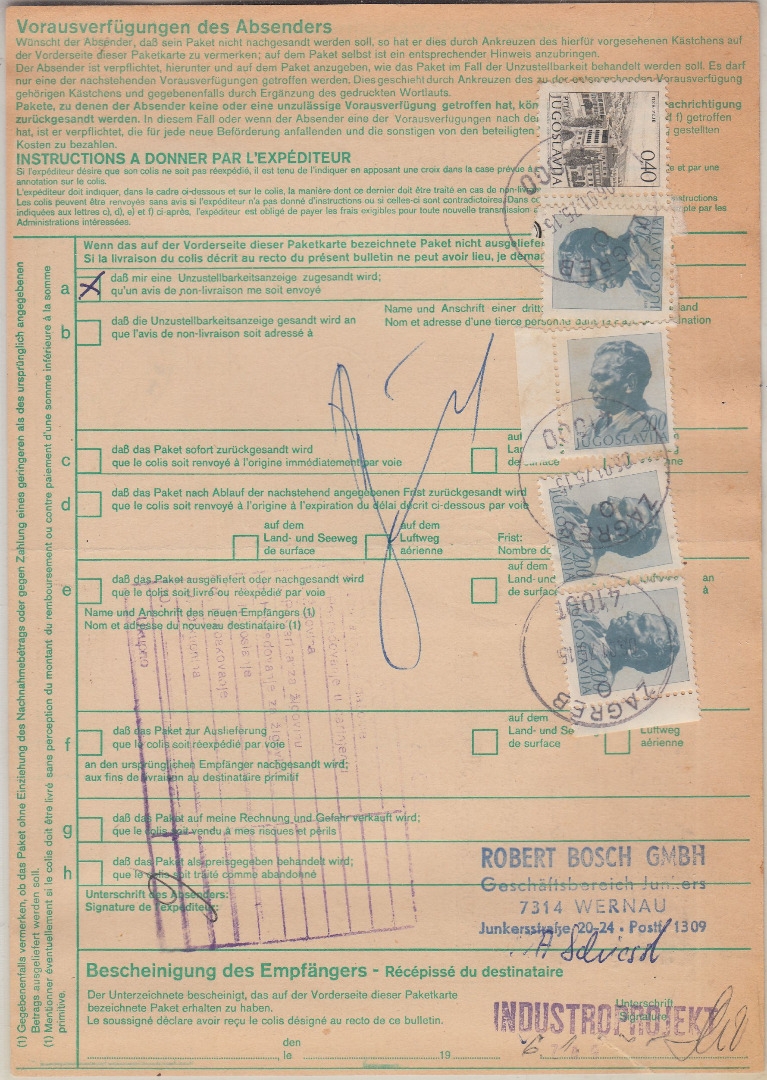 gelaufen n. Zagreb - rs. jugosl. Aushändigungsgebühr