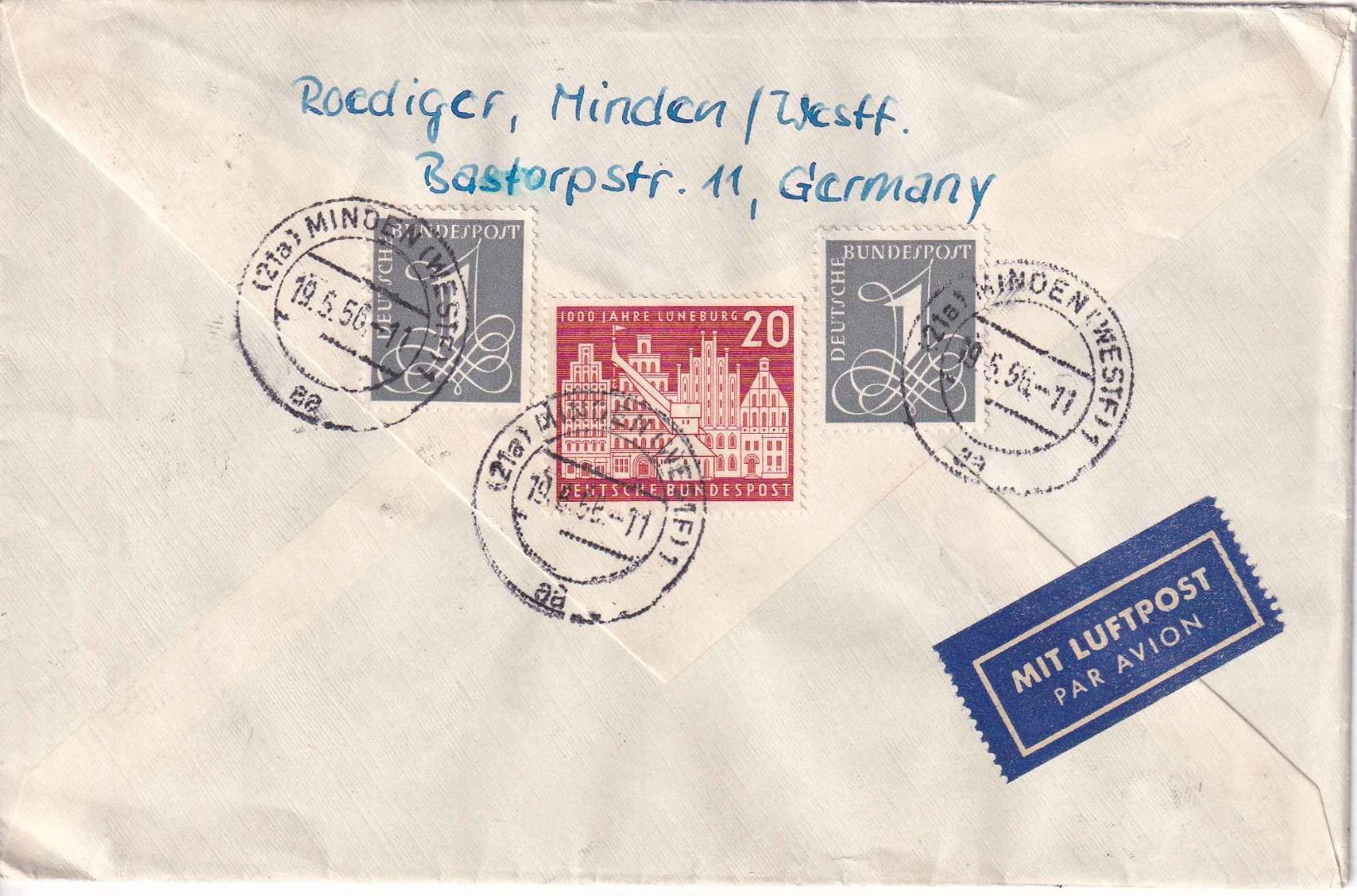 BRD - Wohlfahrt 1955 u.a. Luftpostbrief n. USA Minden - Cleveland 1956
