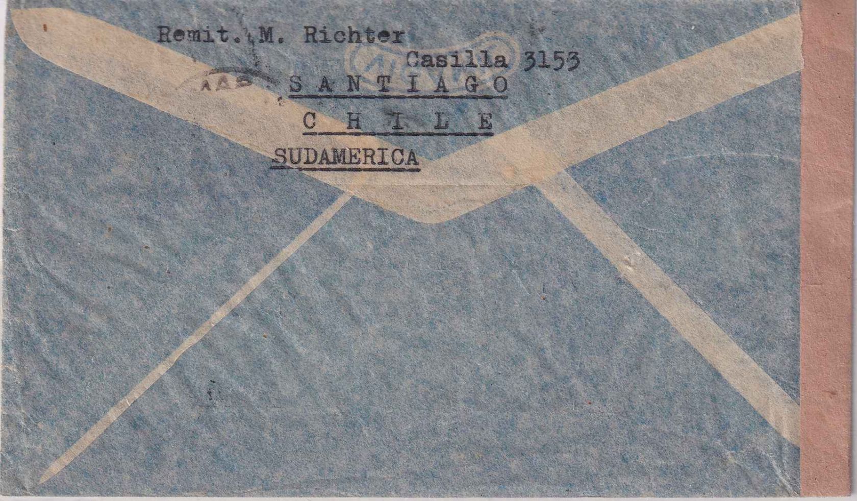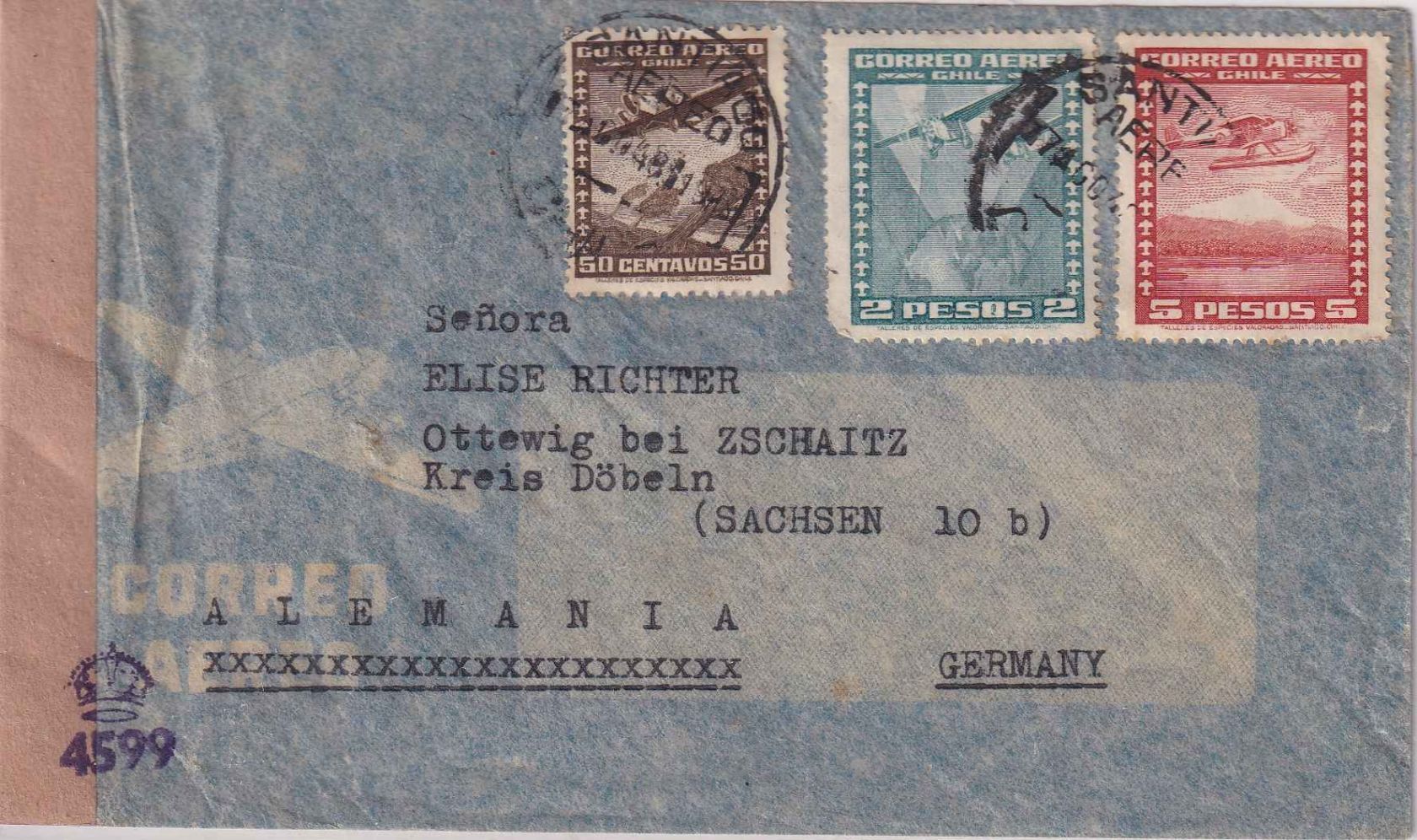Chile - 5 P. u.a. Flugpost Luftpostbrief Santiago - Ottewig 1948 brit. Zensur
