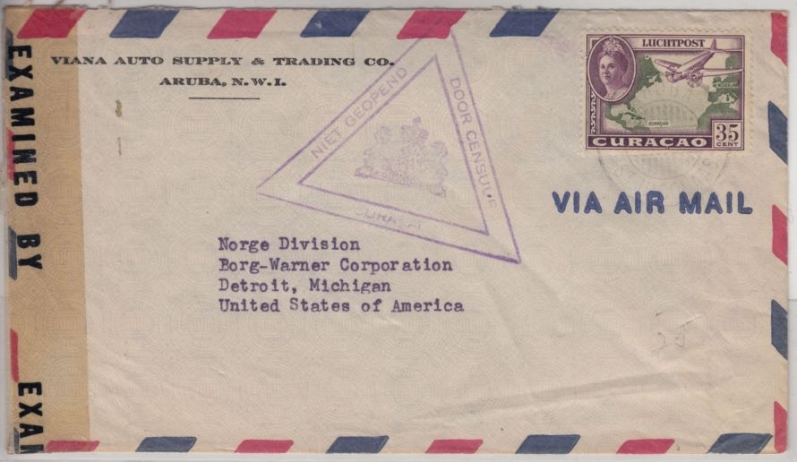niederl. Zensurstempel u. US-Zensurverschluss - ohne Inhalt