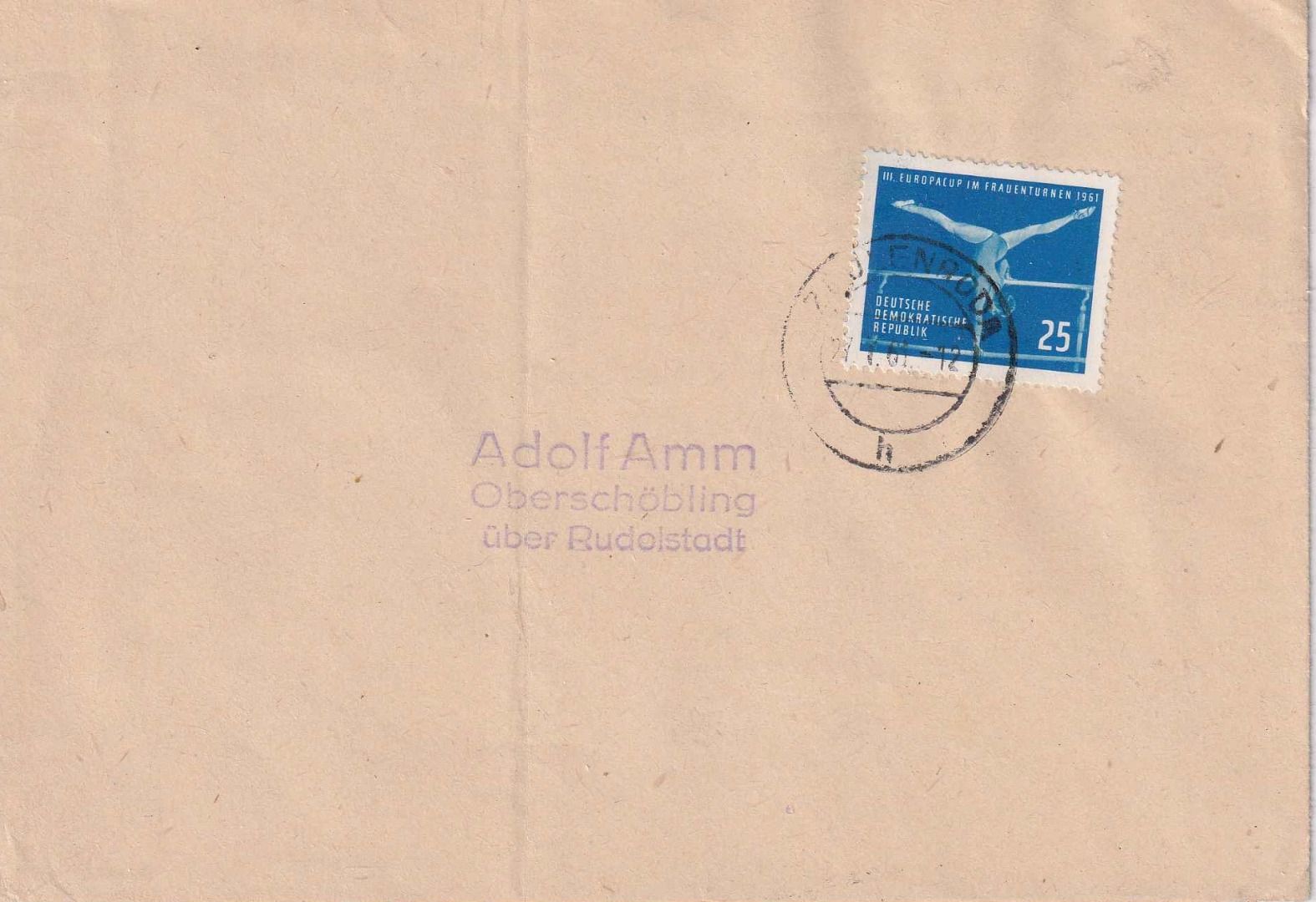 DDR - 25 Pfg. Kunstturn-EM Brief Zeulenroda - Oberschöbling 1961