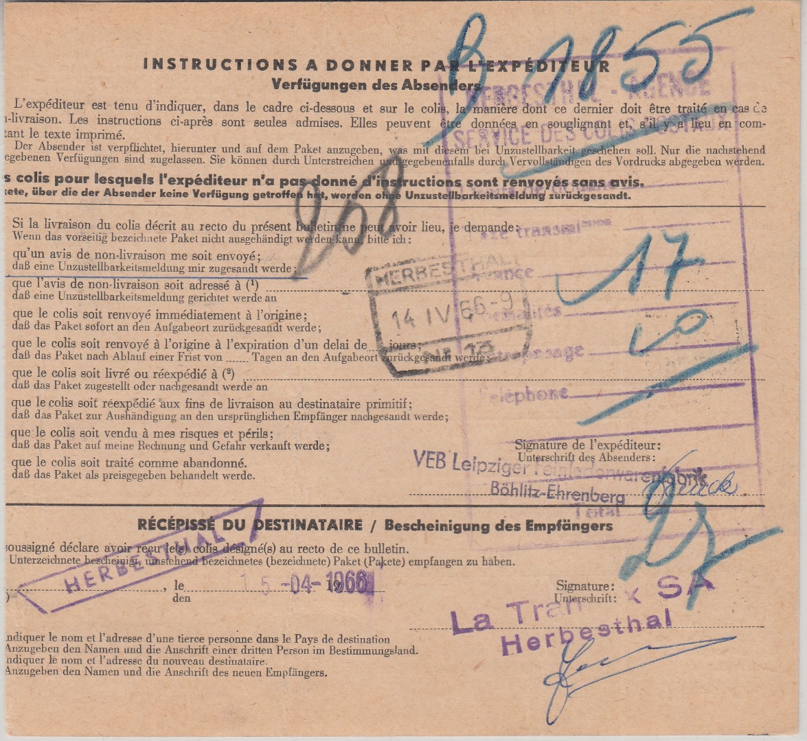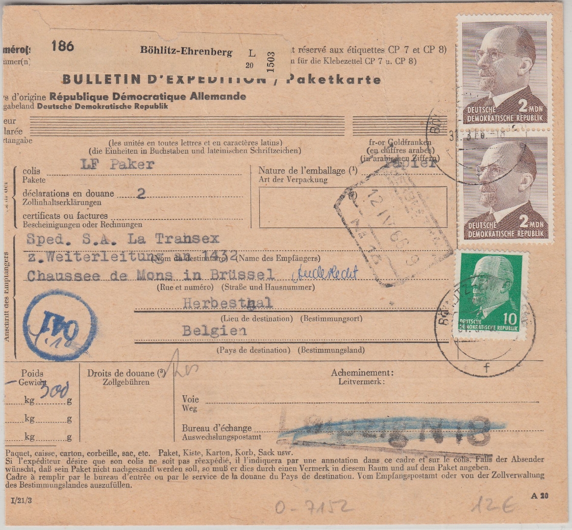 gelaufen n. Herbesthal - Formular senkr. Mittelbug